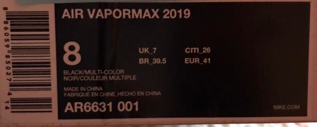 Nike Air Vapormax 2019 "Throwback Future "ナイキ エア ヴェイパーマックス2019 "スローバックフューチャー"(AR6631-001)黒26cm箱あり