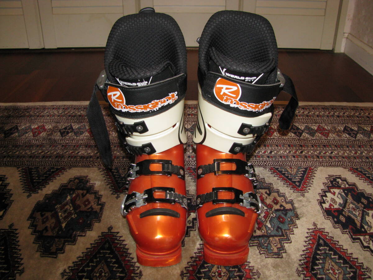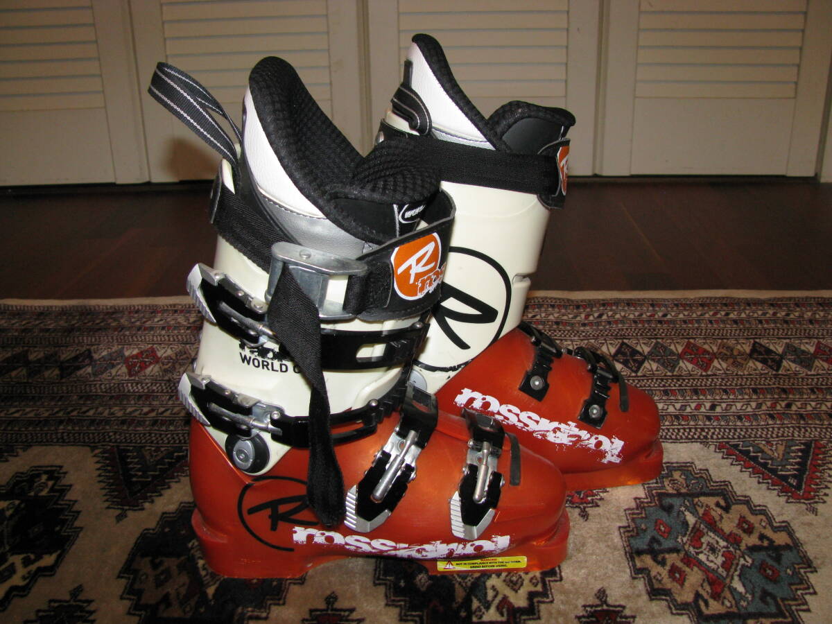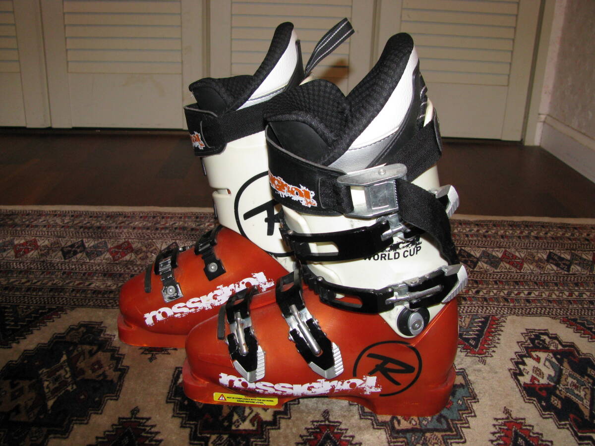 ロシニョールの中上級ジュニア用スキーブーツRadical ワールドカップ ZJです。色はオレンジ系、サイズは22-22.5㎝、キズ、汚れなどあります、ご了承ください。送料1400円(北海道1800円)でお送りいたします。