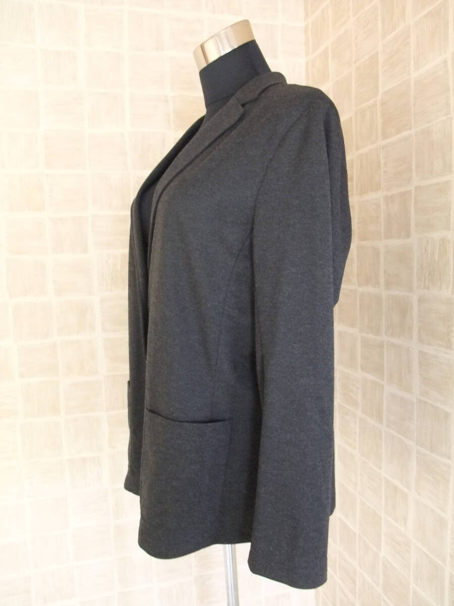 【表示サイズ】表示タグ切り抜いています(Lだと思います) ■実寸サイズ■身幅48㎝・肩幅41㎝・袖丈56㎝・着丈63㎝ ■素材■ポリエステル74%・レーヨン23%・ポリウレタン3% ■お色■すみくろ ■状態■2-3回着用しました | |||