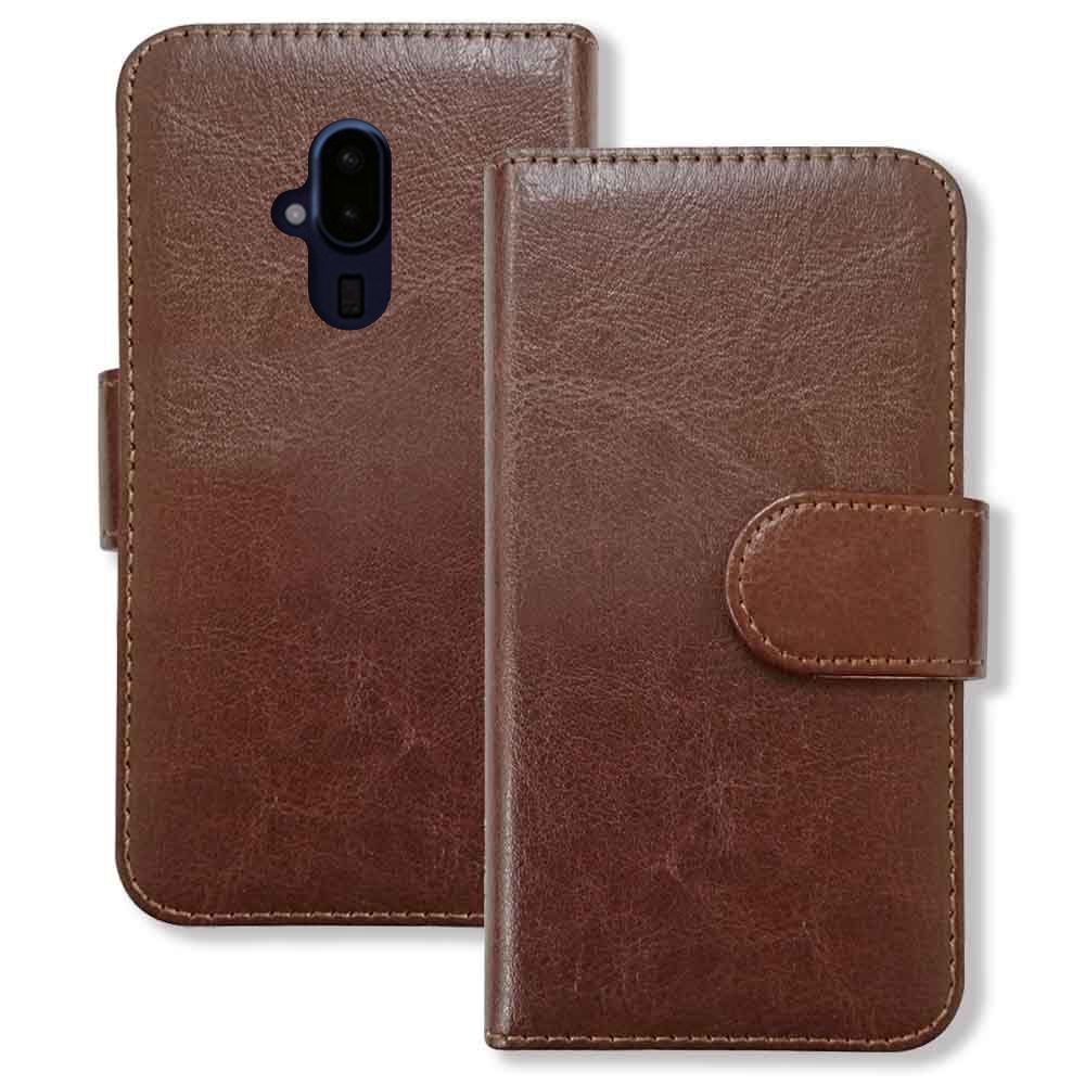 らくらくスマートフォン F-52B スマホケース(手帳ブラウン)手帳型 PUレザー 無地 ケース ダイアリータイプ 横開き カード収納 カバー