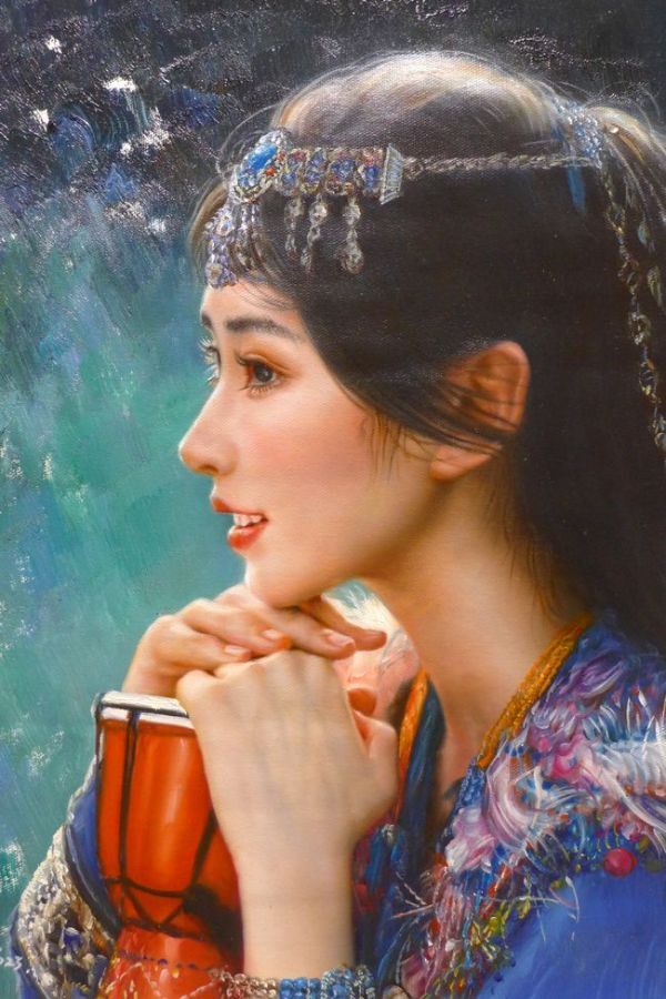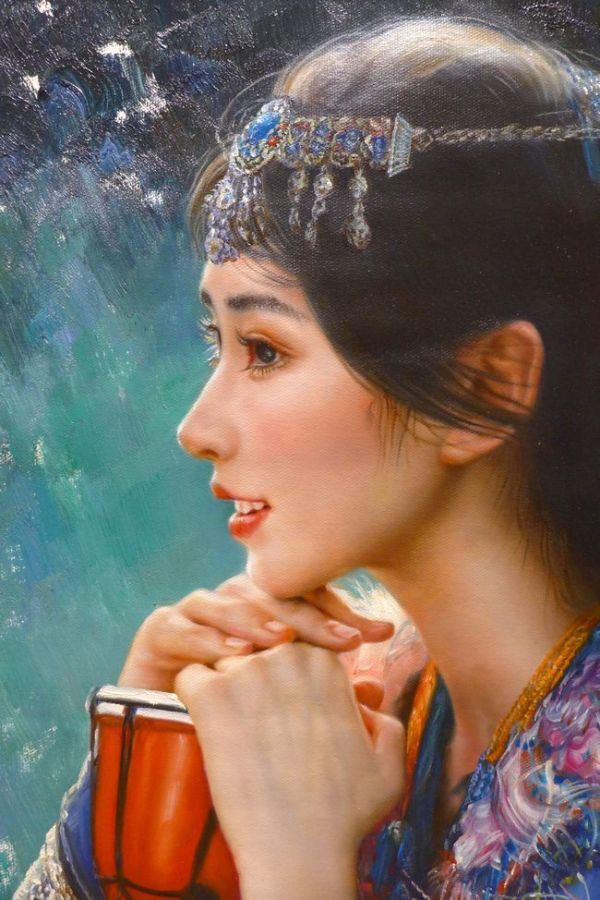 写実的な素晴らしい絵画です。 これから舞を始める前の爽やかな笑顔に惹きつけられます。 |