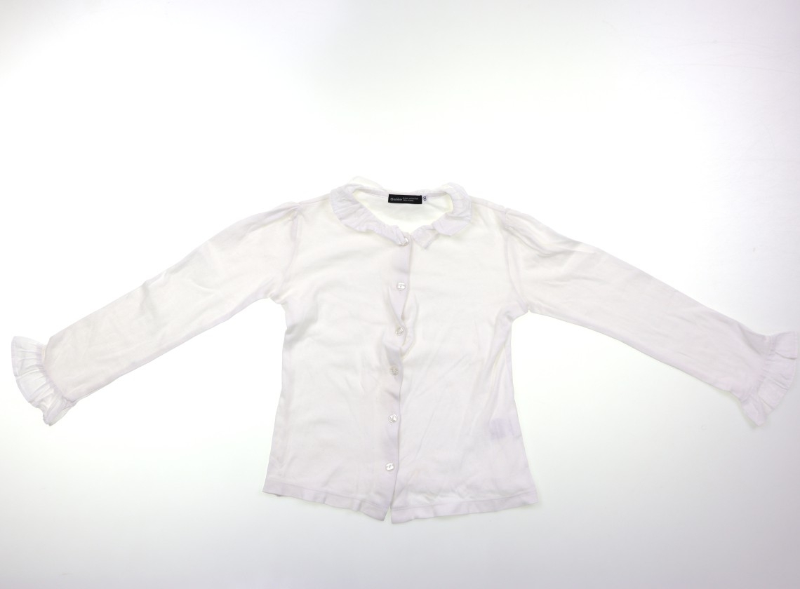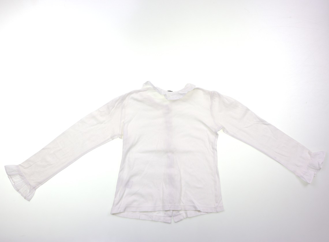 カットソー素材。襟と袖口はブラウス地。薄いシミがいくつか見受けられ、ややヨレ感・洗いざらし感があります。