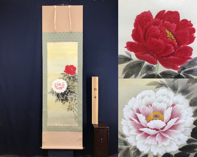 真作/三宅和光/牡丹図/花図/花鳥図/掛軸☆宝船☆AF-176