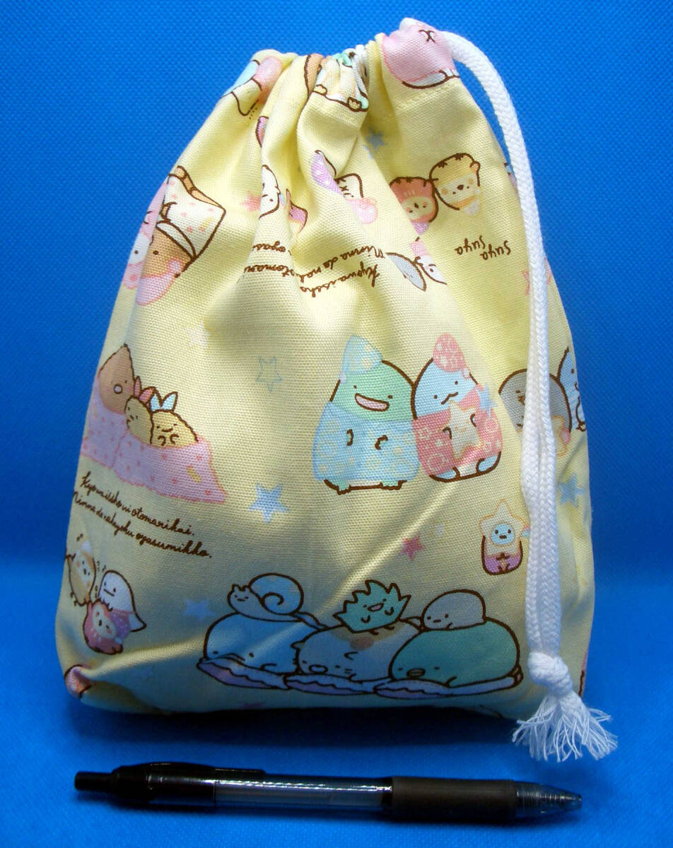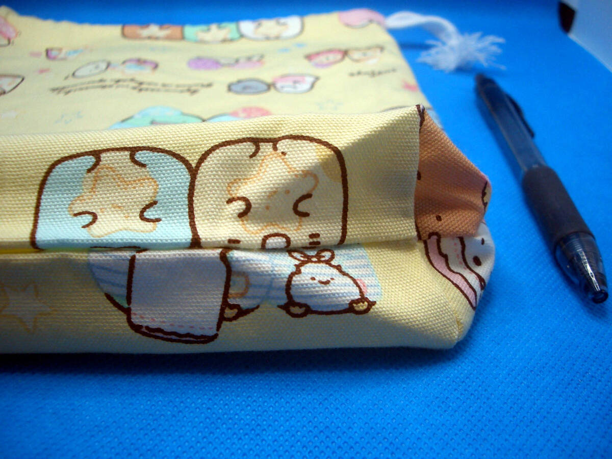 1,000円以上落札で送料無料 即決  給食袋 片手絞り クリーム色地 すみっコ おやすみ ハンドメイド 女の子 手作り
