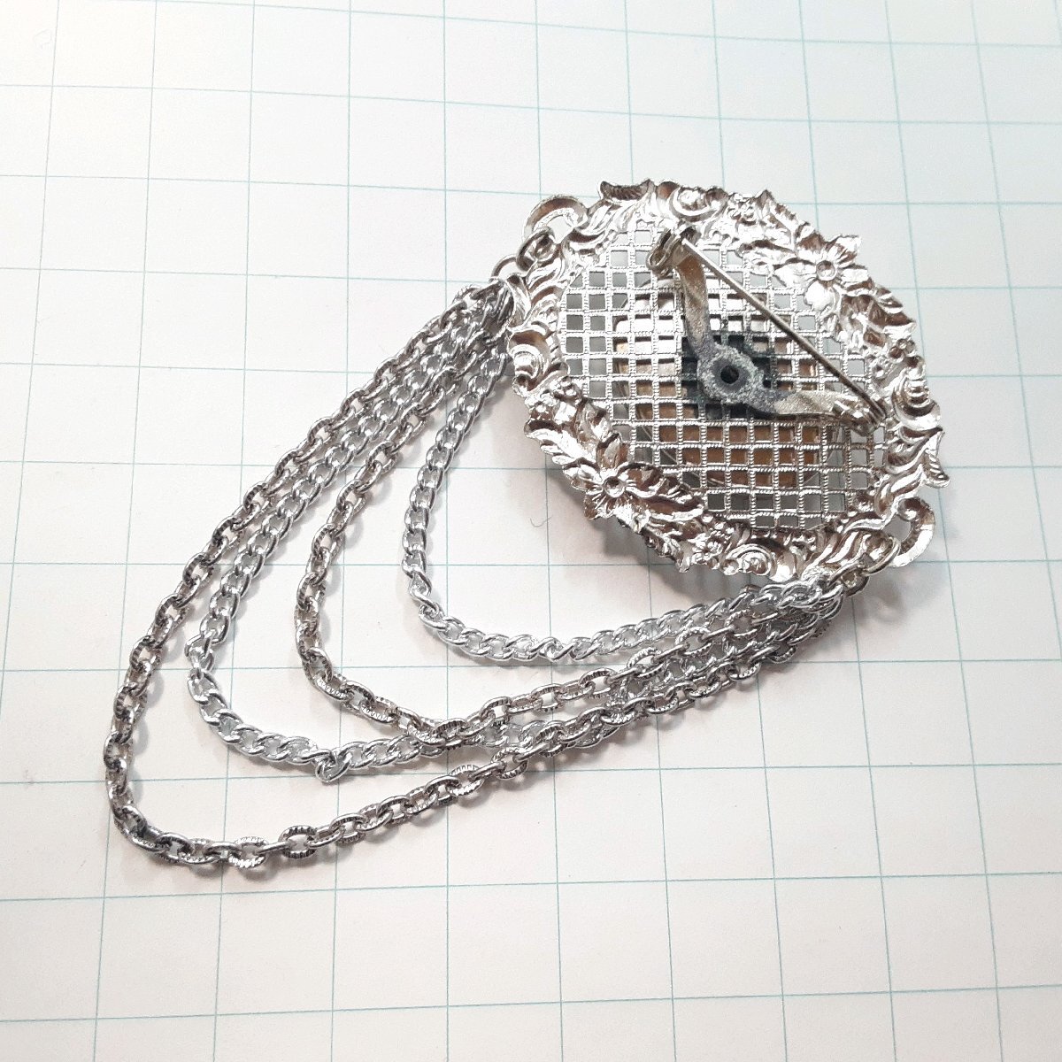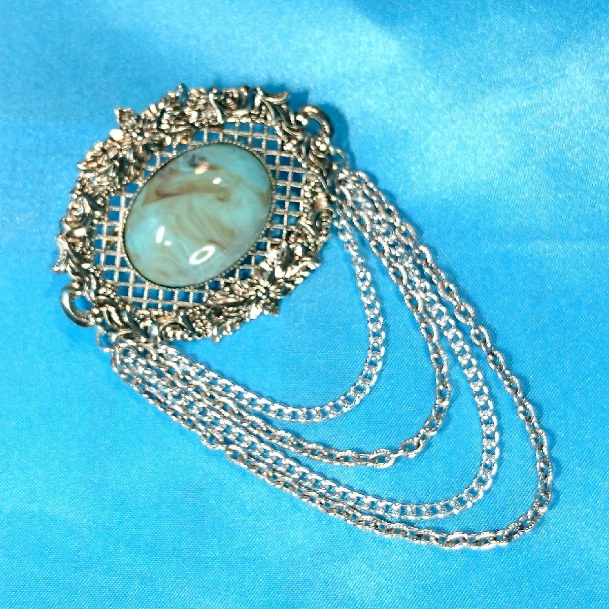 送料無料)ビンテージ☆青瑪瑙 チェーンエンブレム☆アンティーク ブローチ A23389