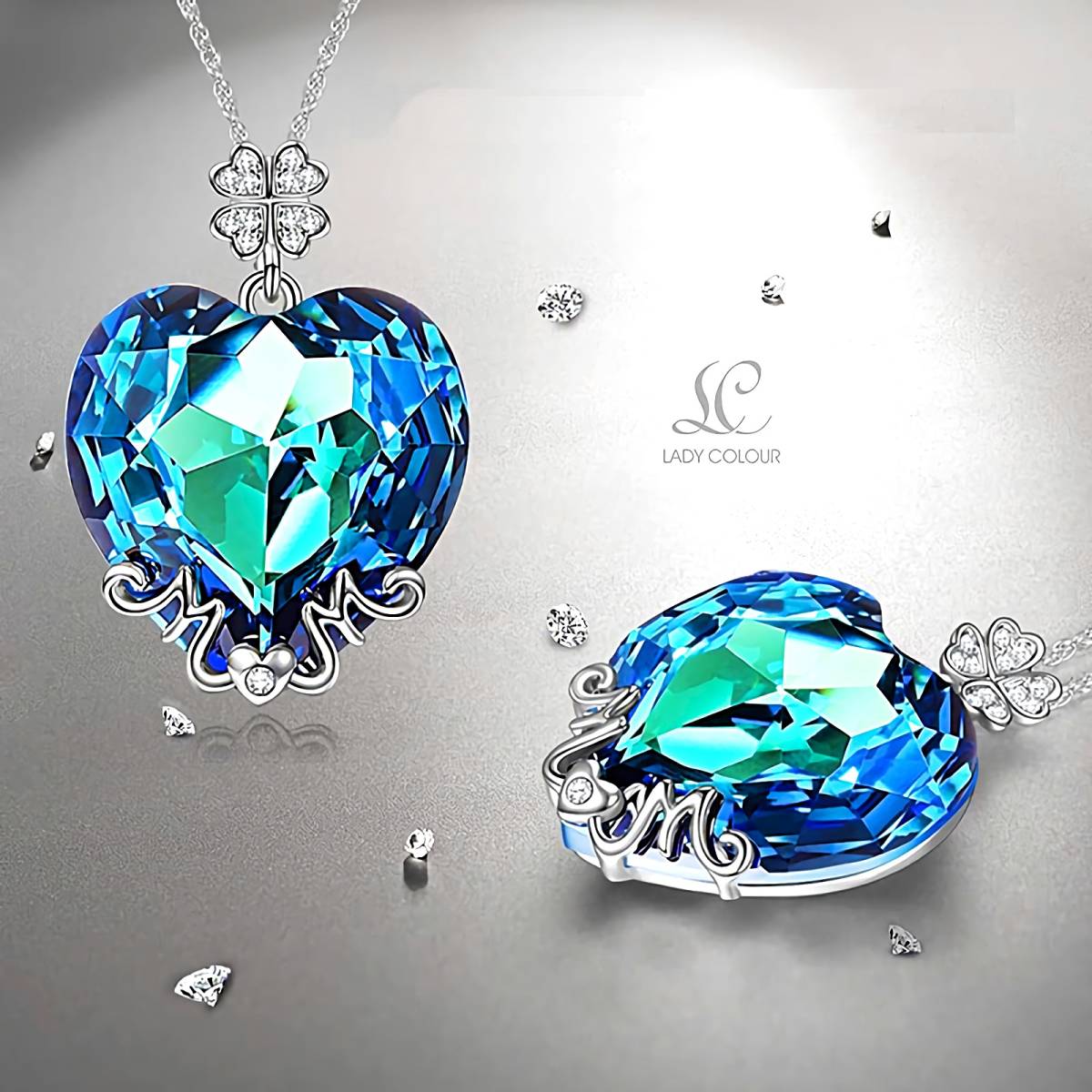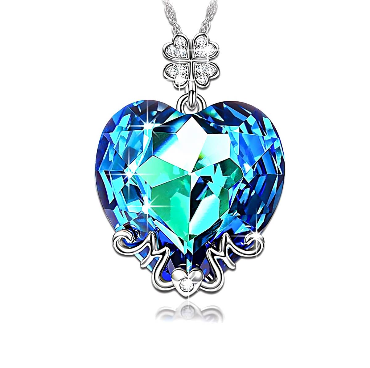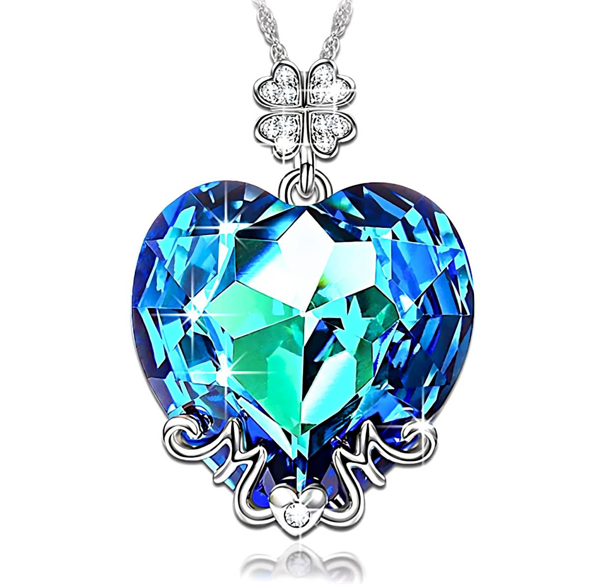 新品★送料無料★蒼玉ブルーサファイアハート四葉ダイヤプラチナ仕上925シルバーネックレス誕生日プレゼント旅行連休春ギフト国内発送