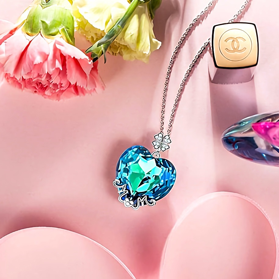 こちら四葉チャームにブルーサファイアのハートカットが可愛いダイヤモンド925シルバーネックレスとなります。