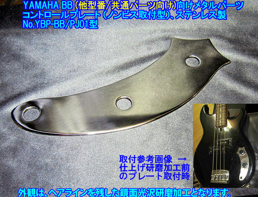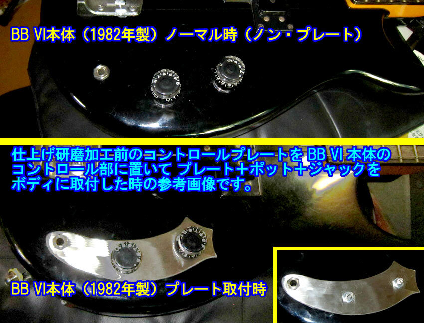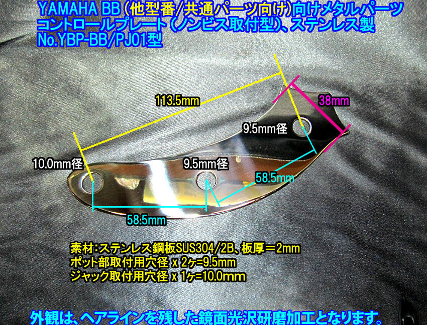 *1980年代 YAMAHA BB(BB共通パーツ/ポット+ジャック付属)向け ノンビス型,レギュラー/レフティ兼用 コントロールプレート,ステンレス製 1枚