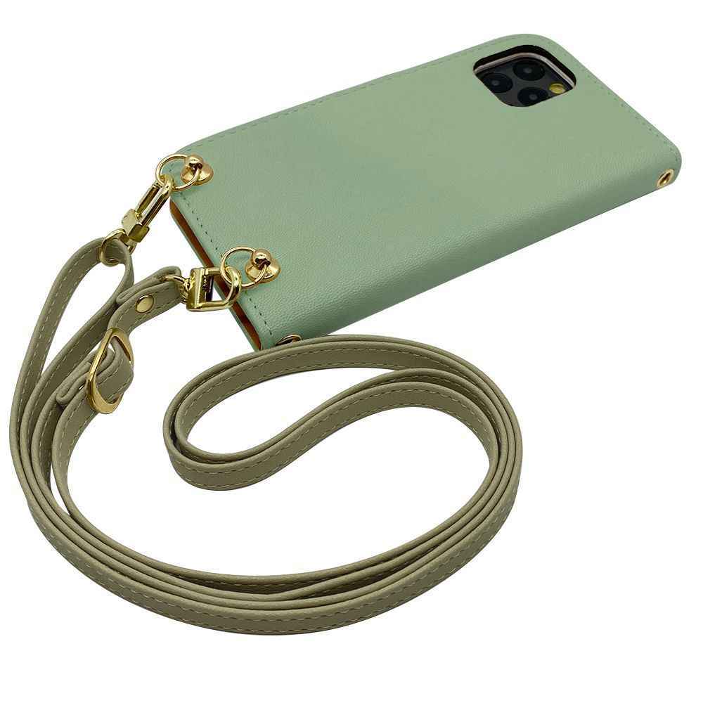 Pixel4 ピクセル4 スマホショルダー(手帳アッシュグリーン×ストラップ:ピスタチオ)カバー 手帳 くすみカラー