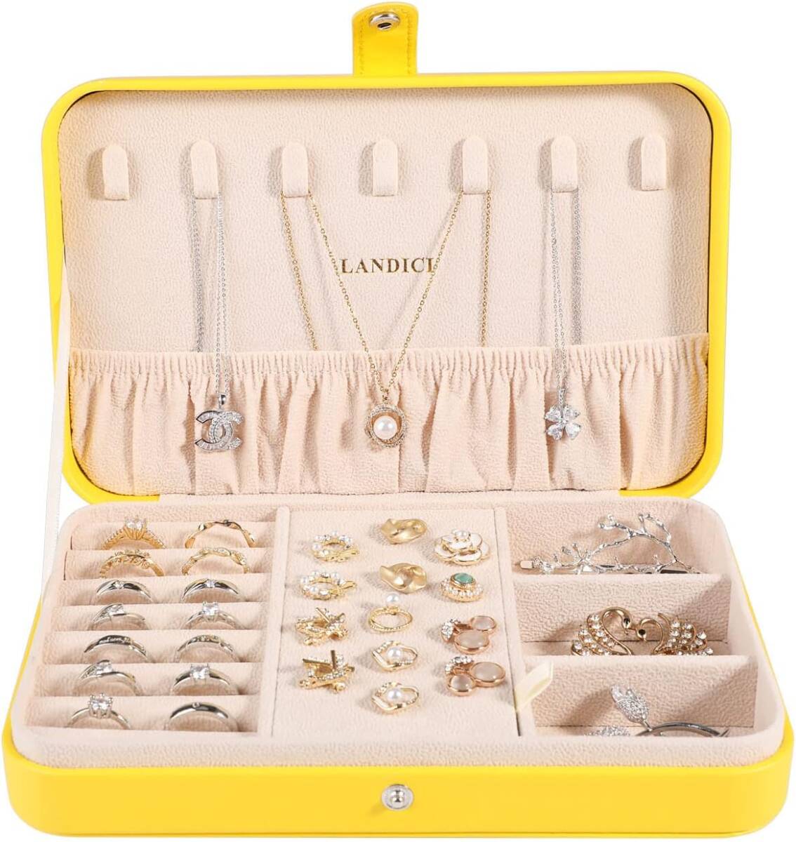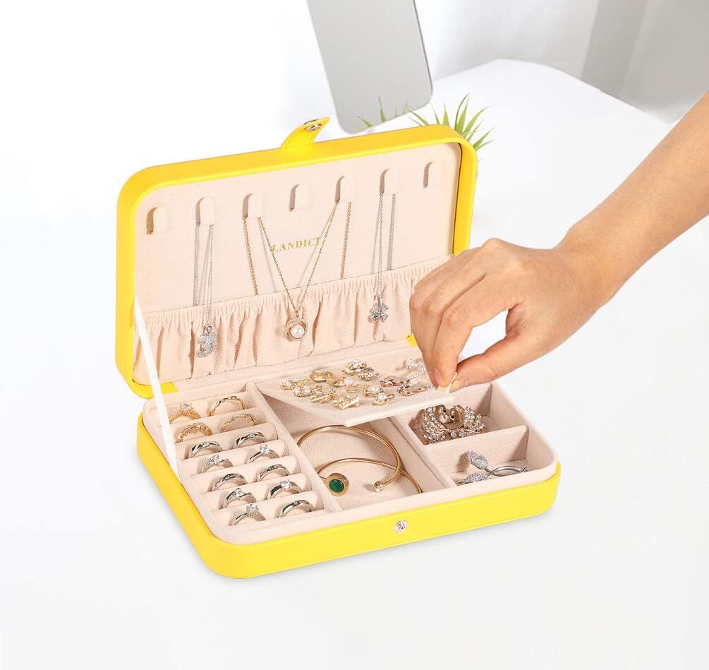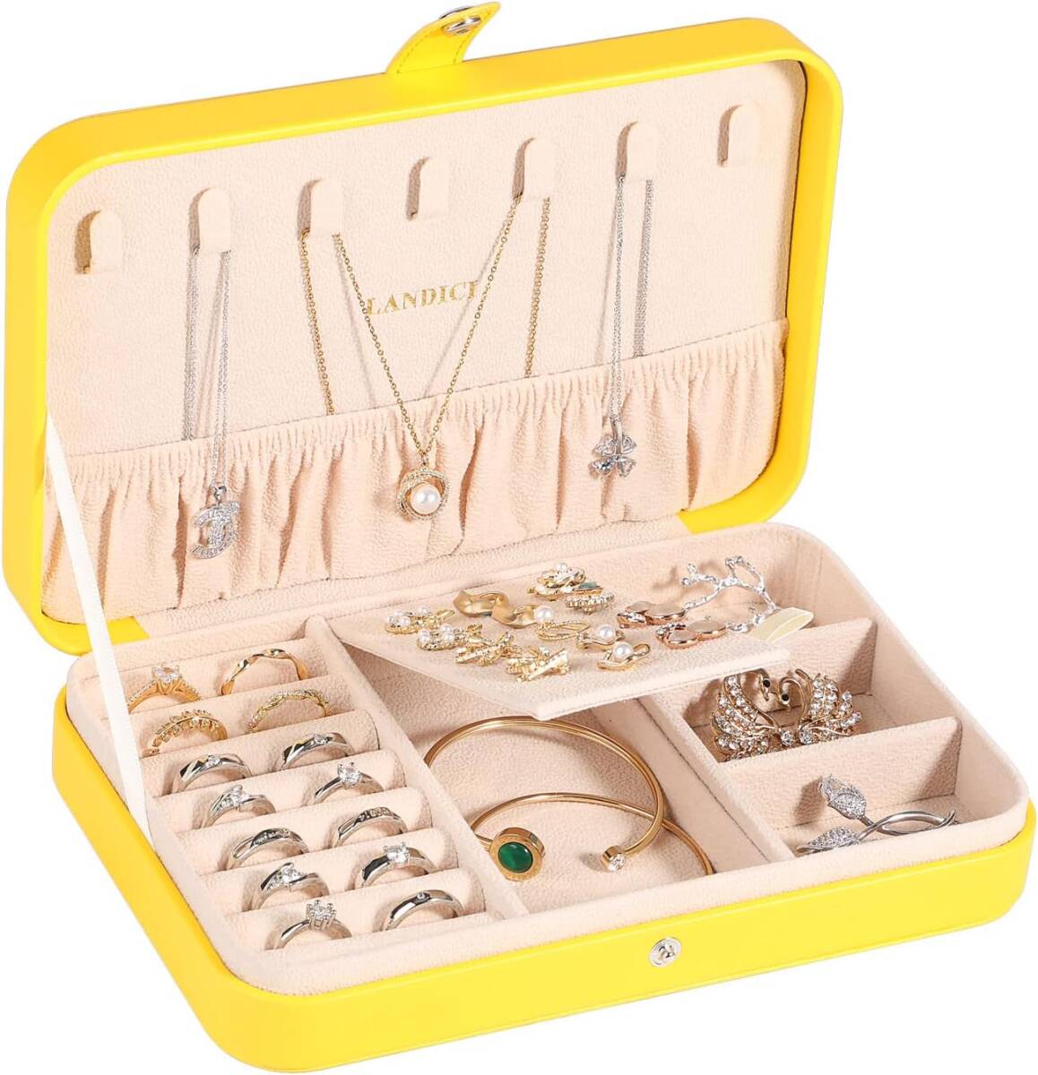 明るい黄色で目を引き、PUレザーの高級感ある外観が、あなたの大切な宝石をエレガントに収納します。