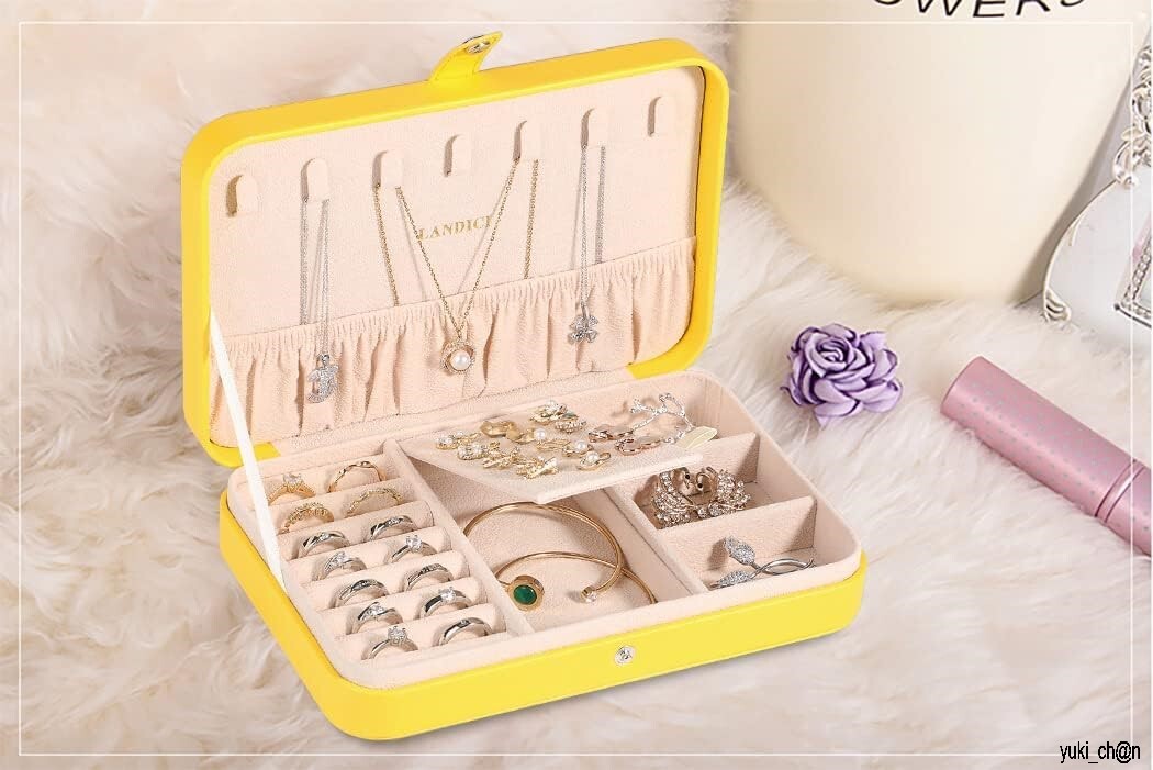 ジュエリーボックス きいろ PUレザージュエリーケース 指輪置きジュエリー収納ケース 携帯用 持ち運び 仕切り付き宝石箱 女性 女の子用