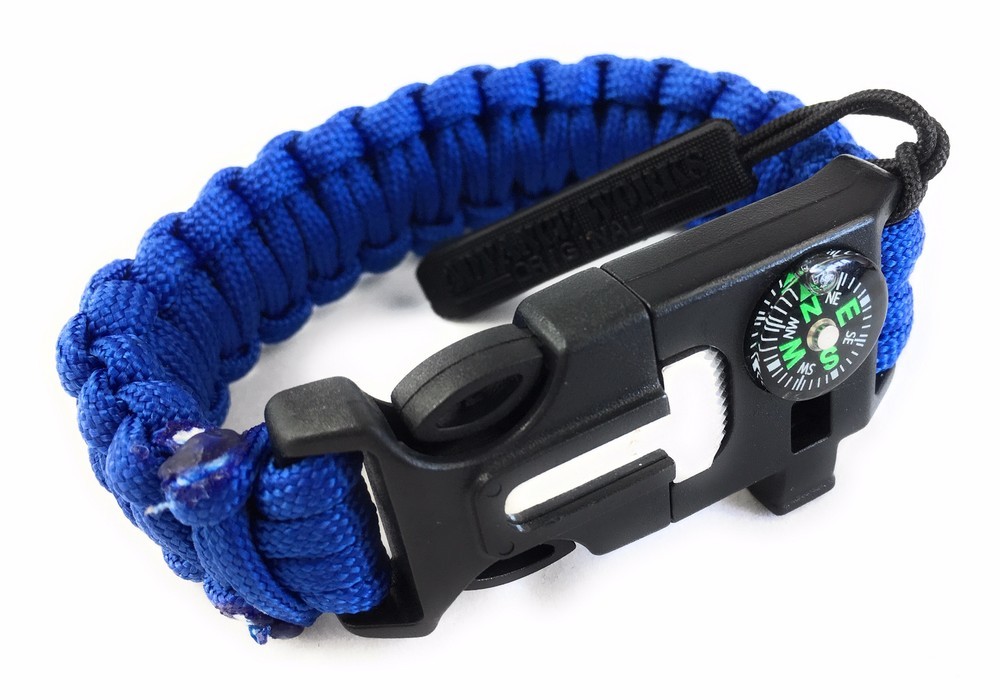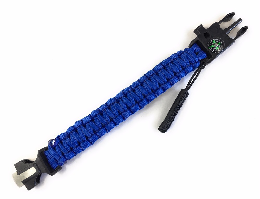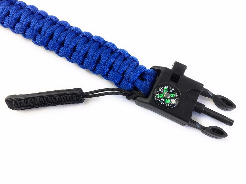 パラブレス 5way パラコード ブレスレット ジップタブ付 【青】 多機能 コンパス 笛 スクレーパー ファイヤースターター ブルー
