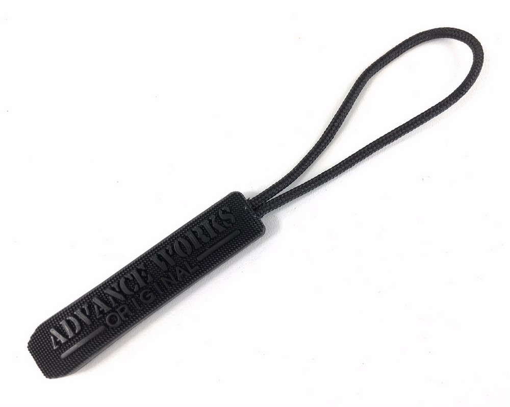 アドバンスワークスオリジナルのジップタブは、アウターやバッグのファスナーつまみに付けると開閉時に便利です。