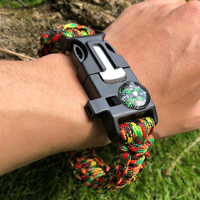 アウトドアや非常時に活躍する多機能ブレスレットです。