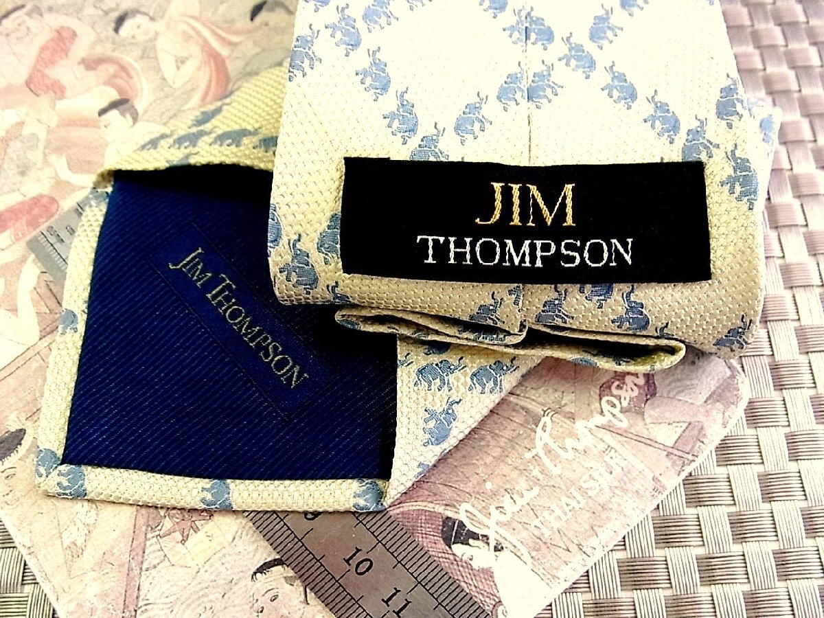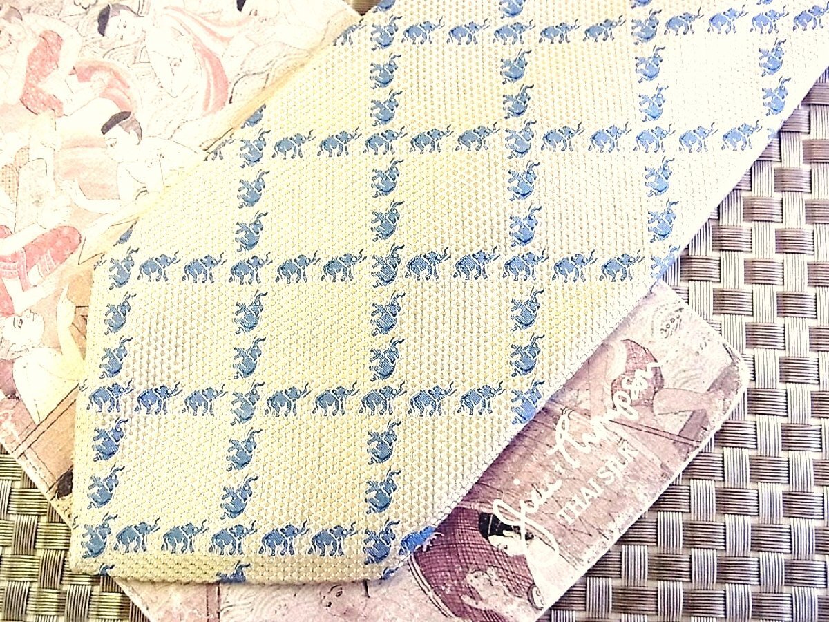 ★RB0985★【刺繍・象 ゾウ 動物 格子 柄】ジムトンプソン【美品】ネクタイ