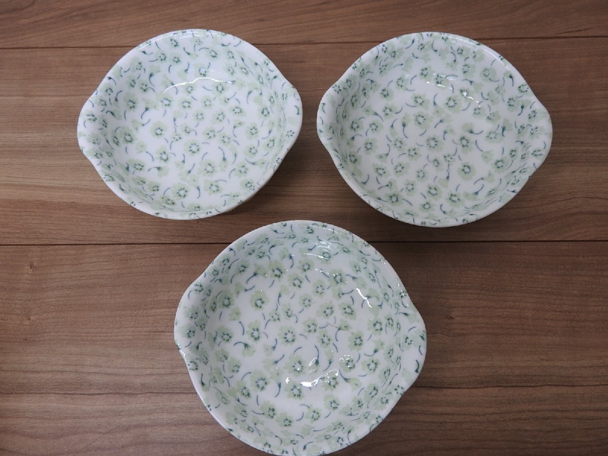 陶器 食器 小鉢 スープ皿 3枚 になります。 保管期間ございますが、未使用品になります。 外箱 保管による傷み(ダメージ)ございます。 【サイズ】 直径 13㎝ 高さ 4㎝ 写っているものが全てです。 状態も含めて写真にてご確認下さい。 | ||||
