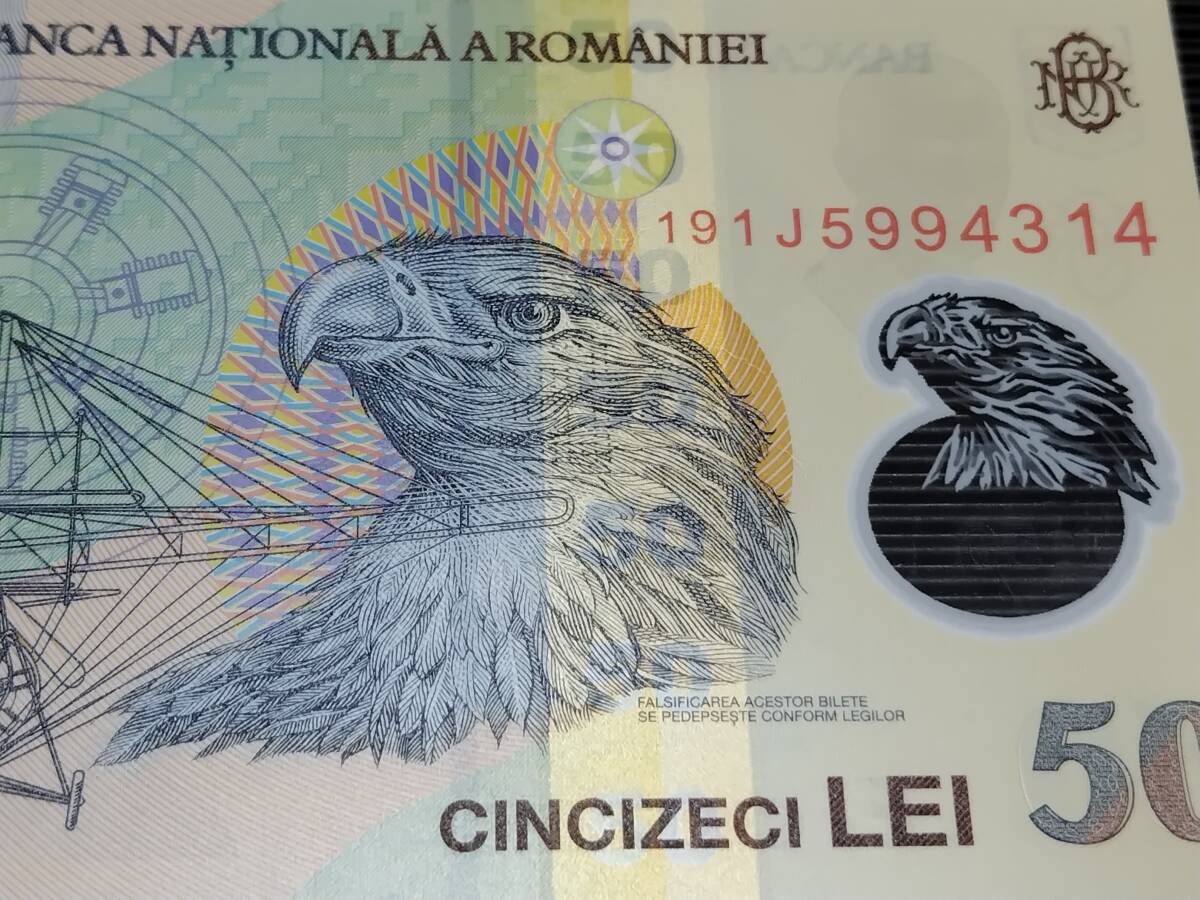 ルーマニア 50 Leiポリマー札 コレクション向きの新札 2019年 未使用 鳥  #19 1J5994314