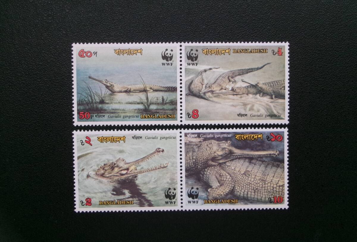 バングラデシュ人民共和国1990年発行 爬虫類・インドガビアルの生態・世界自然保護基金切手 2種連刷X2 NH オフセット印刷 未使用美品です。