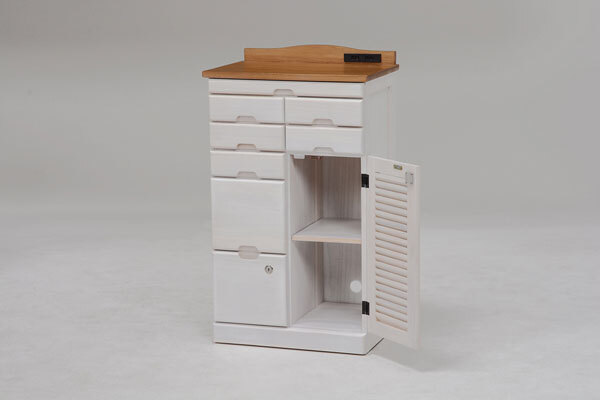 キャスター付ファックス台 チェスト コンセント付 48センチ幅 ナチュラルホワイト色 引出し付き収納 鍵付き 完成品シンプルなデザインで収納力抜群のファックス台です。鍵付きの引出しには大切なものを保管できます。キャスター付きで移動もラクラク。2口コンセント付きです。届いてすぐに使えるうれしい完成品◇サイズ:幅48×奥行32×高さ83センチ◇主材:桐◇鍵付◇キャスター付◇2口コンセント付◇完成品☆落札、ご入金確認後 1~2日にて発送いたします 追加納期のかかるものは商品ページに記載いたしております よろしくお願いいたします。