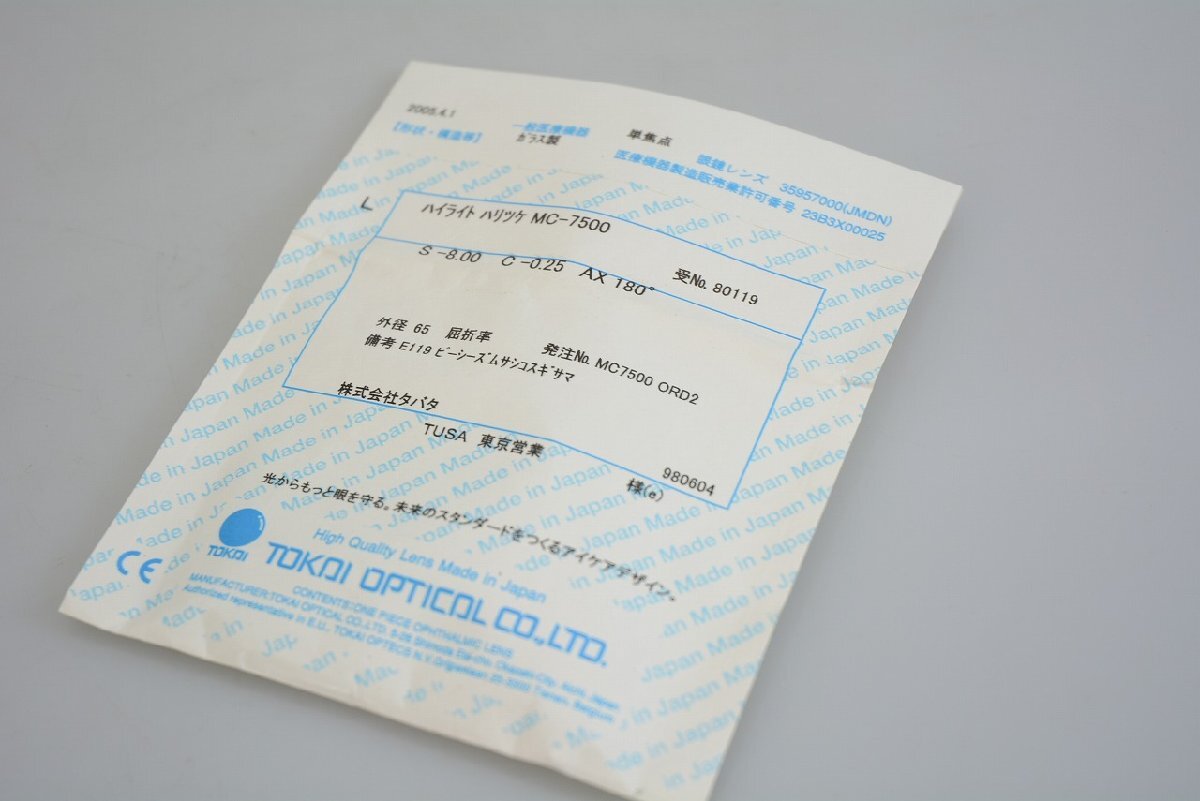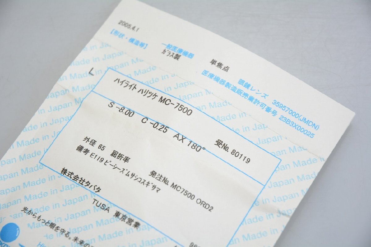 | 【中古品ランク】B【ブランド】TUSA【型番】MC-7500【商品詳細】度数:-8.0(1枚のみ)左右共通【状態コメント】・多少の汚れがありますが、全体的に程度良好品です。・特注レンズになります。 ※パッケージにダメージがある可能性はありますが、中身は中古品ランクをご参照ください。 |