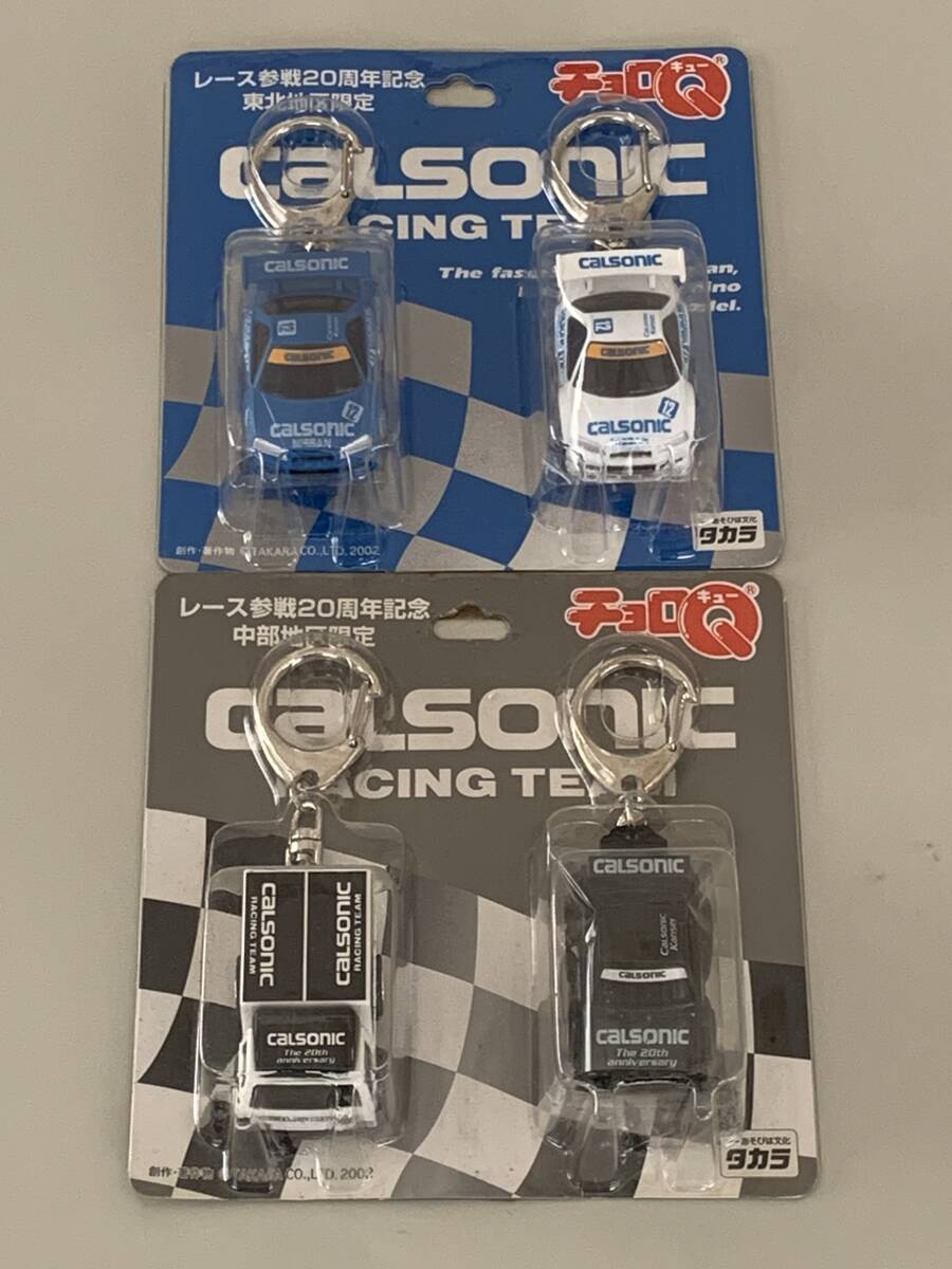 ◆レース参戦20周年記念【 中部地区限定 & 九州地区限定 CALSONIC レーシングチーム チョロQ 4台セット キーホルダー付】台紙に難あり◆