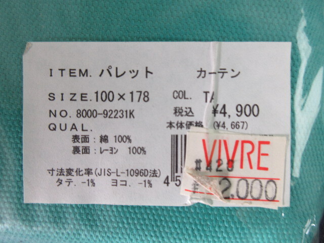 | 商品説明 | 【VIVRE/Yai-Yai】カーテン/100x178cm/グリーン系/1個定価4900円/4個セット/未使用 状態:未使用自宅保管品。。かなり古い品物で、自宅倉庫に眠っておりました。長期保管による外箱の擦れや汚れが見受けられます。神経質な方の入札はお控え下さい。お写真に写っているものが全てです。お写真を見てご判断できます有識者さまの入札を希望致します。 |