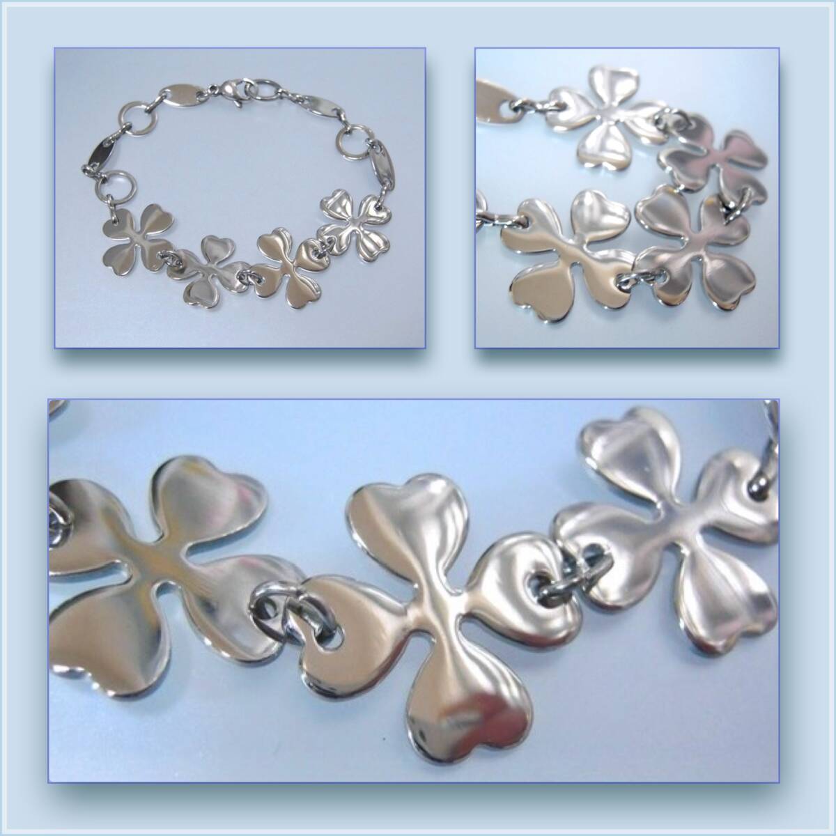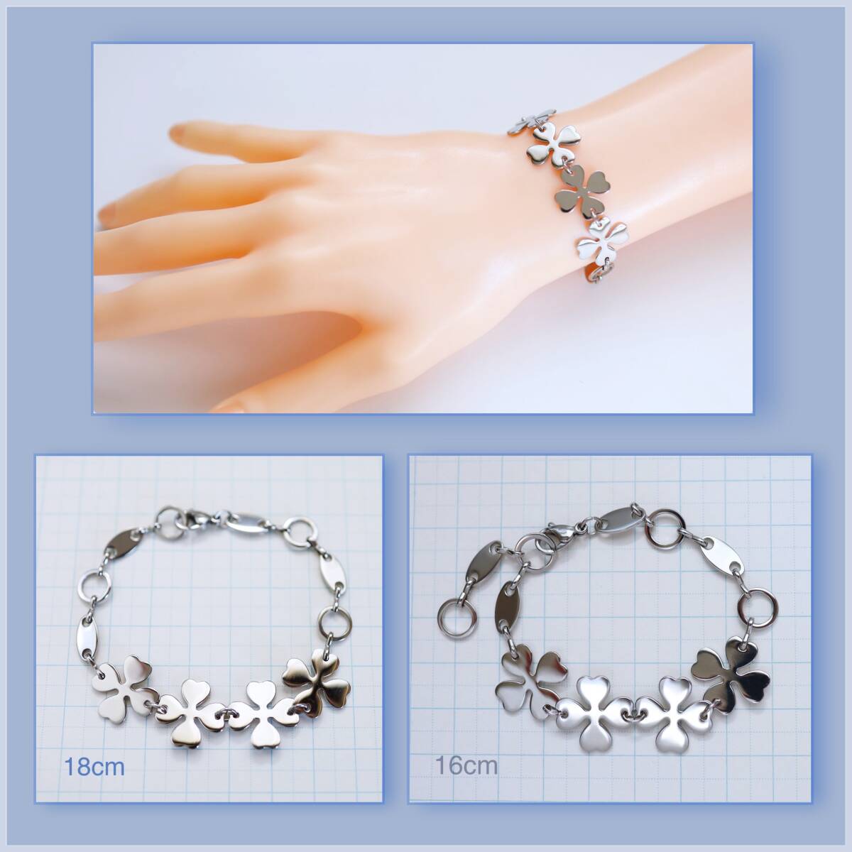 B6456/ステンレス製 四つ葉のクローバー ブレスレット 16cm ゆるめ 19cm 幸運 運気アップ お守り オールステンレス つけっぱなし
