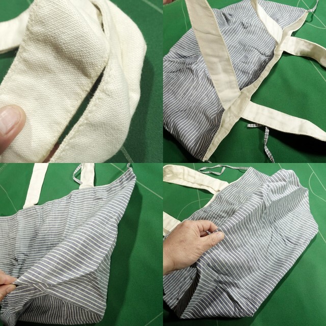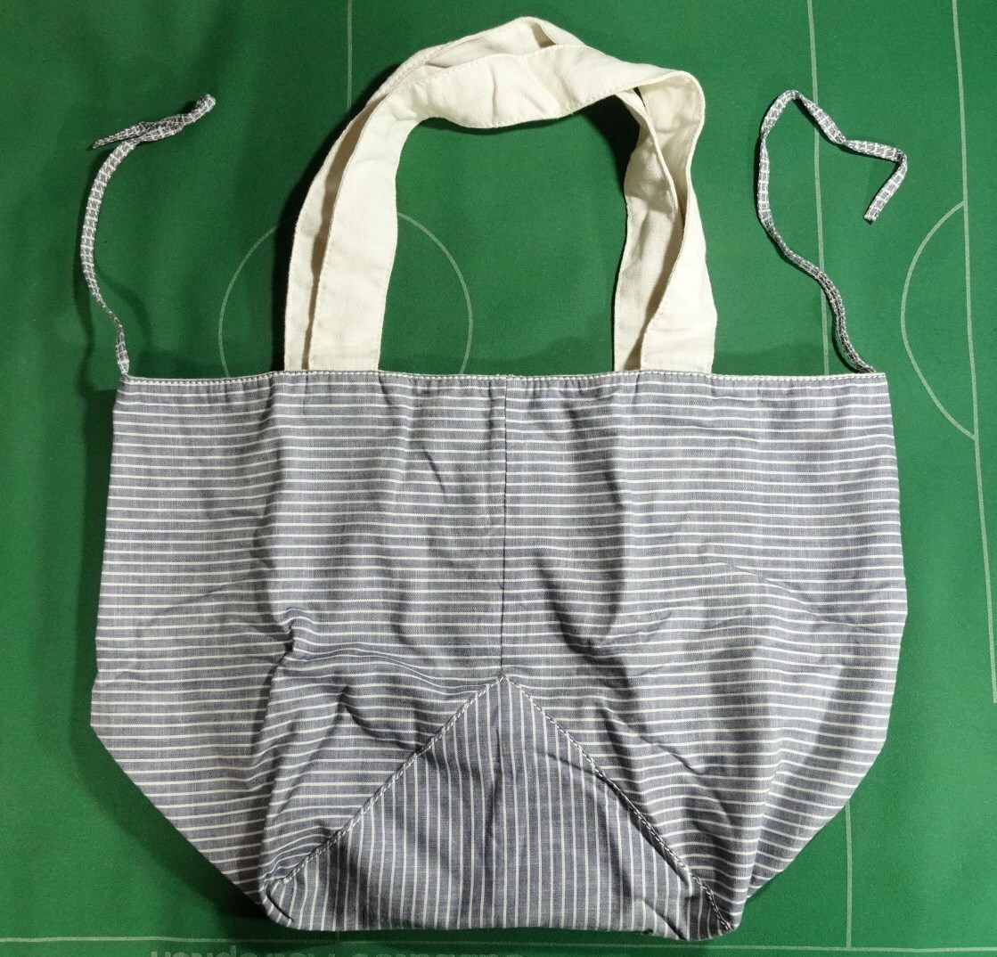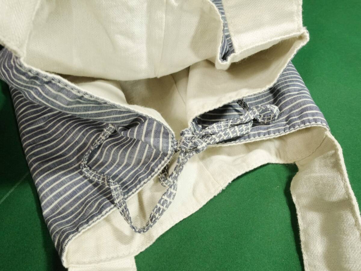 そのまま使えばトートバッグですが、左右のひもを締めれば幅を抑え縦長シェイプで使うことも出来ます。