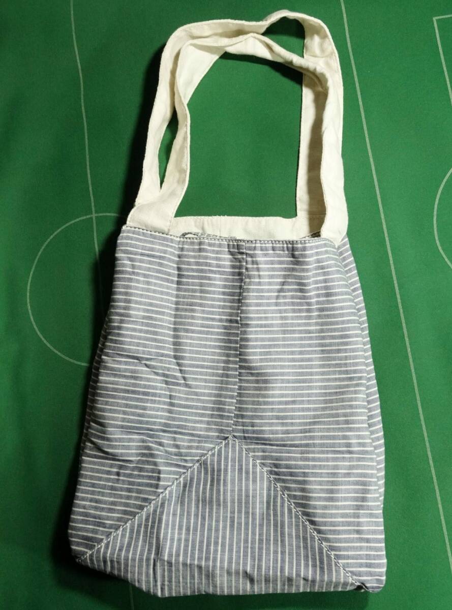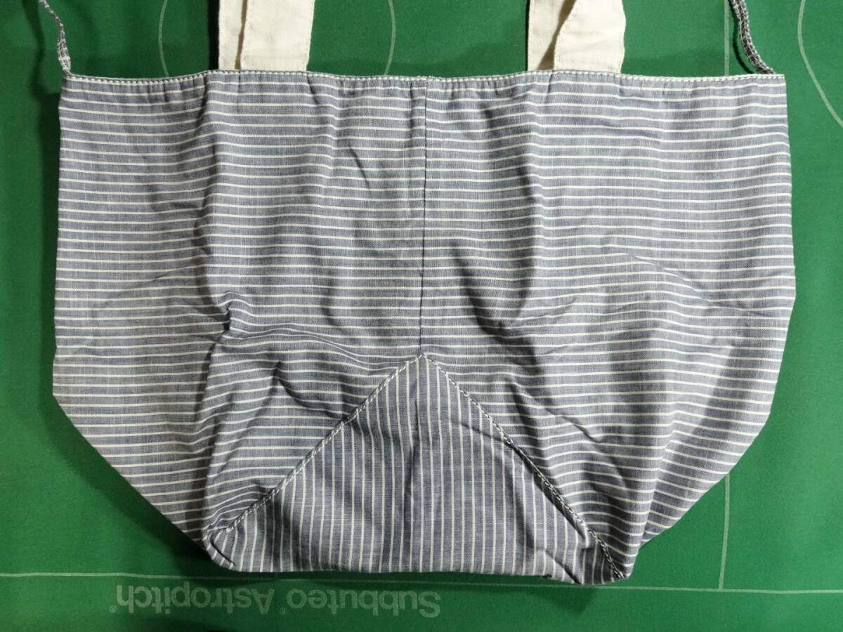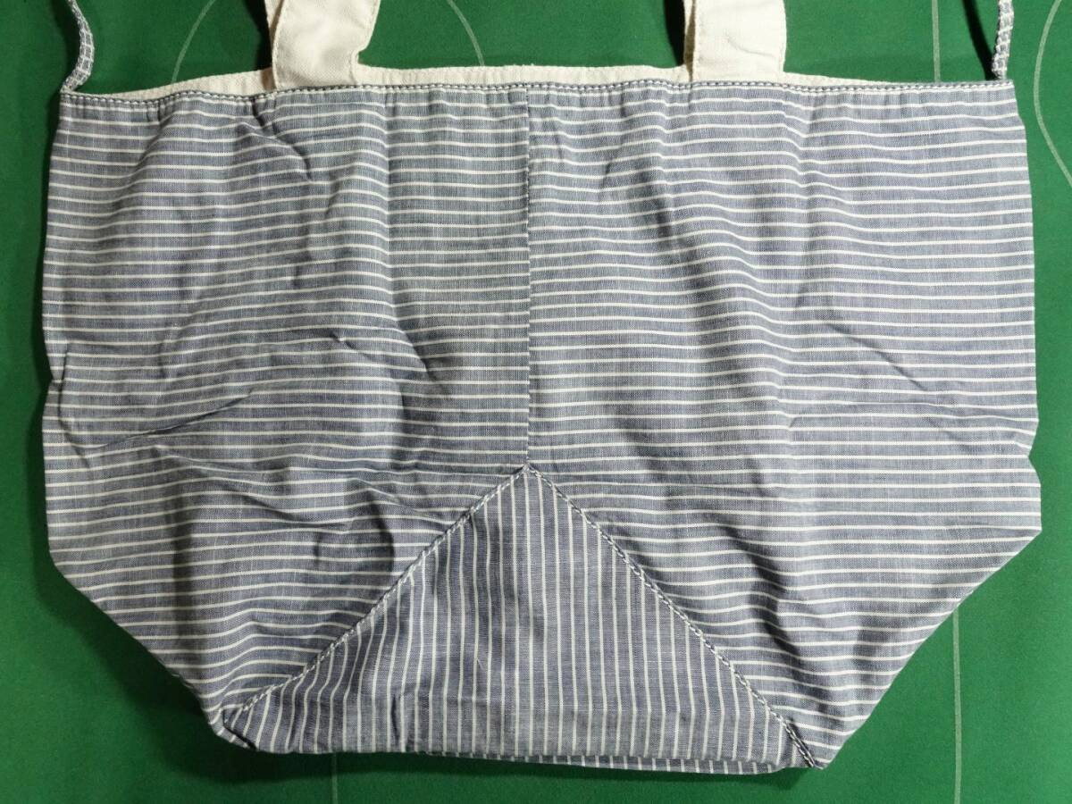ストライプ柄 トートバッグ/ショッパーバッグ ネイビー/キナリ ほぼ未使用です。