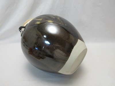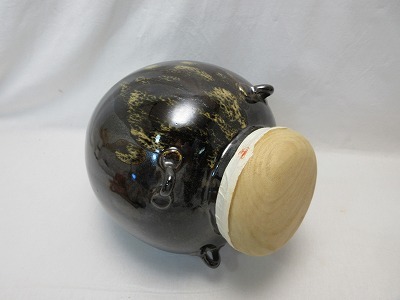 604745 【 美品 茶道具 平安 草山造 飾壺 天目釉 茶壺 飾網紐付 四つ耳壷 陶印 共箱 】 検)作家物 口切茶事 茶器 茶の湯 炉開き ⅲ | |||