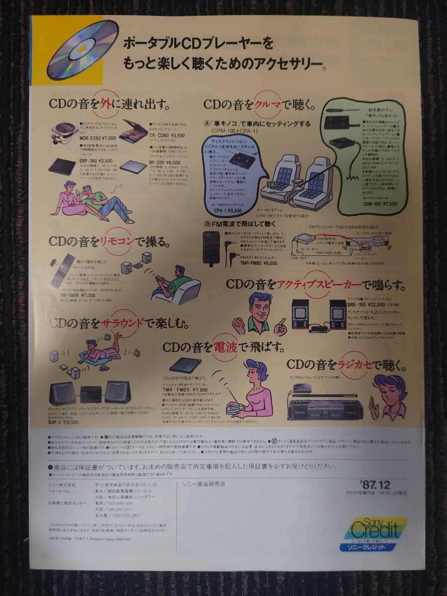 SONY(ソニー)ディスクマン/ラジオカセット「総合カタログ ‘87/12」(超美品)を御譲り致します。