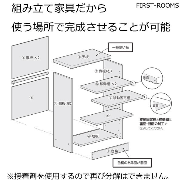 【棚板枚数】3枚【幅の内寸】全体の幅サイズから3.6cmを引いた寸法となります。※側板(縦の両脇の板)の厚みは1.7cm棚は移動可能で穴から穴までの高さ(ピッチ)は3cm【色・主材】12色・プリント紙化粧繊維板【生産国 】JAPAN※お客様組み立て商品です。(組み立て家具です)【お詫び】特注のため、お届けまで14日~かかります。送料込ですが、沖縄・離島は別途送料がかかります。【井崎店長から一言】特別注文のため、ご注文後のサイズの変更、お取り消しが出来ません。【お支払い方法について】代金引換以外をお選びください。お客様組み立て家具・必要工具・プラス・マイナスドライバー、ゴムハンマー
