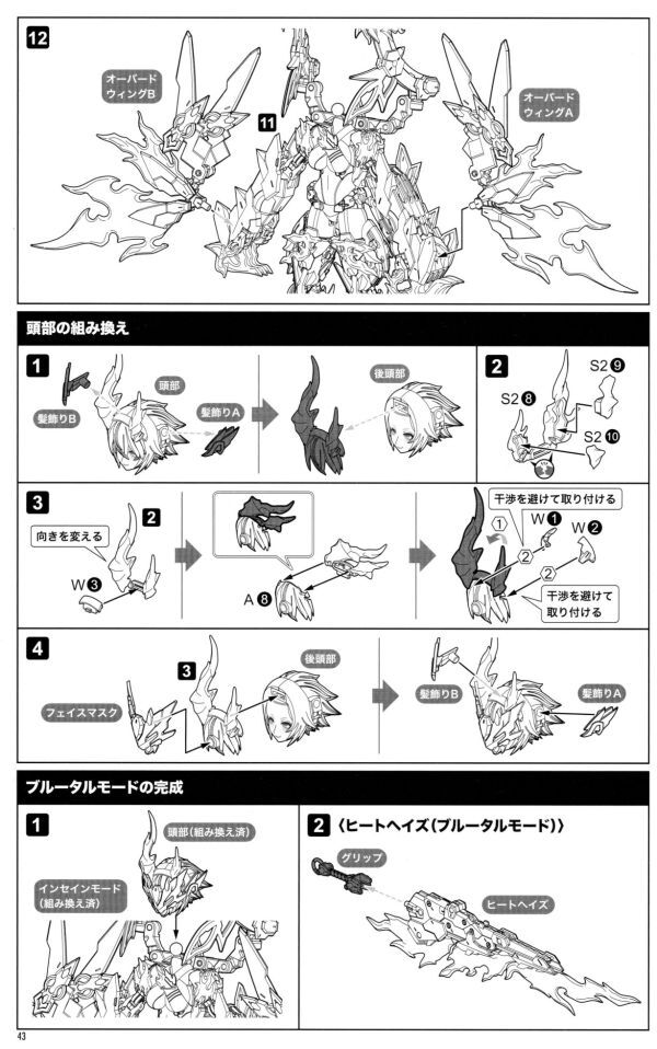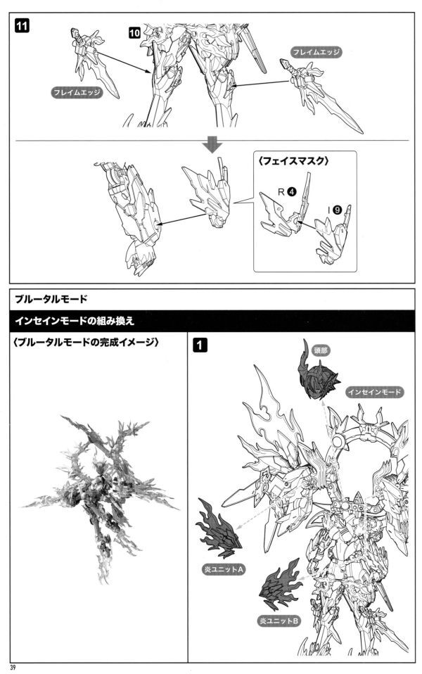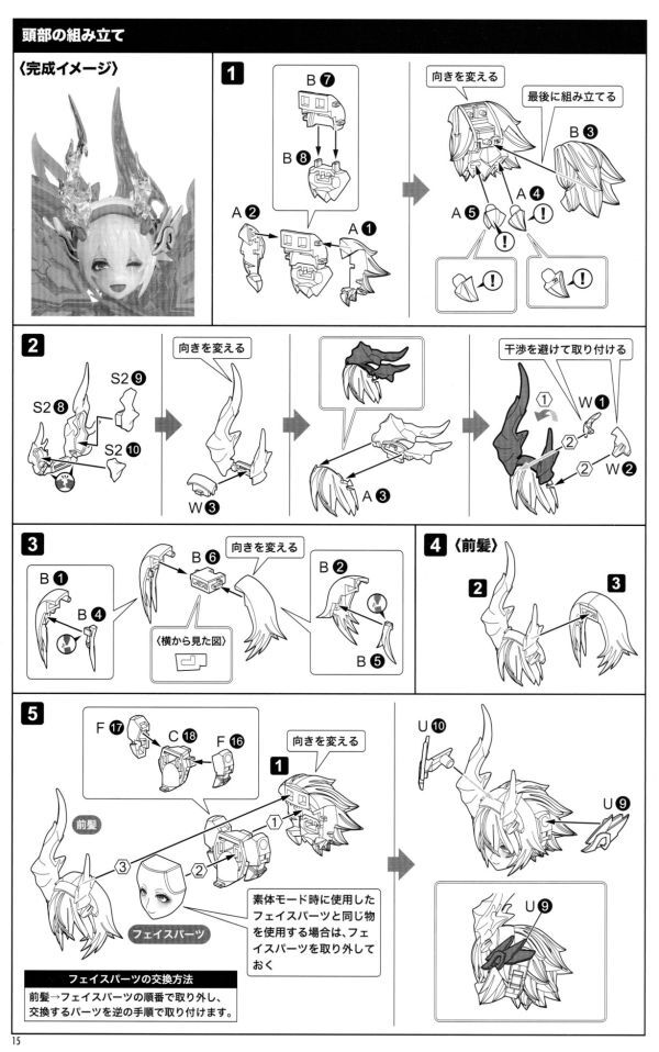 ・説明書の15ページ『頭部の組み立て』、39ページ『フェイスマスク』、43ページ『頭部の組み替え』、が組み立てることができるパーツのセットになります。