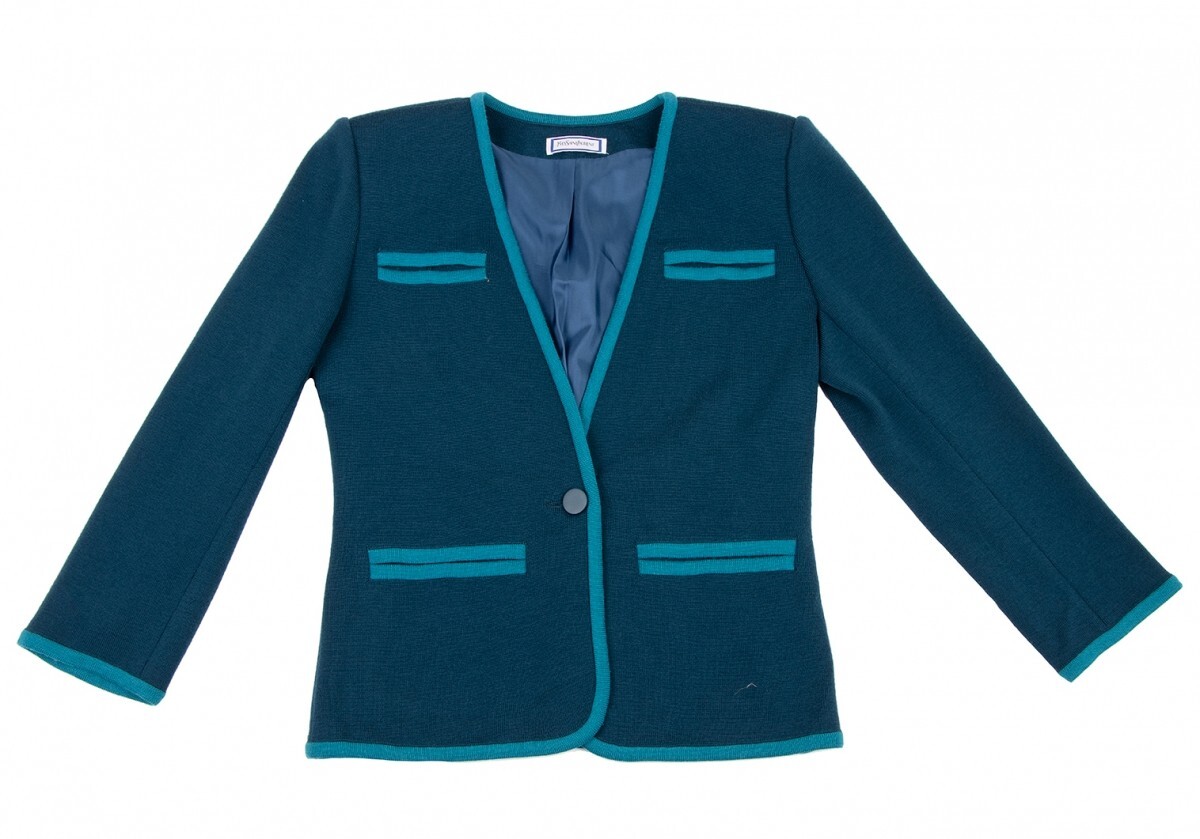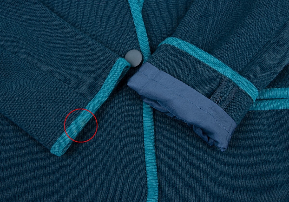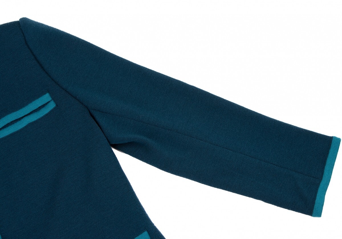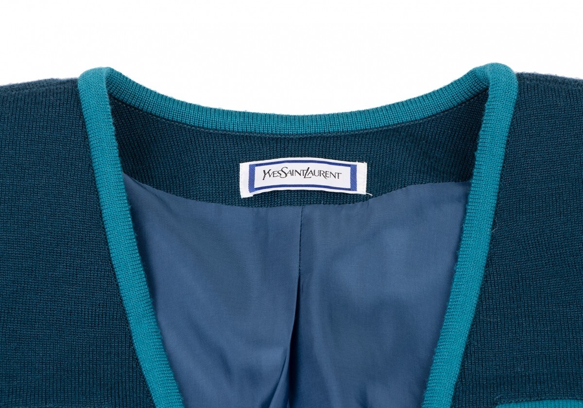 | イヴサンローランYves Saint Laurent ノーカラーニットジャケット 青ターコイズM |