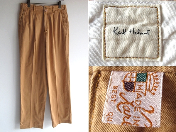 Karl Helmut カールヘルム ロゴピスネーム コットン タックパンツ L ブラウンベージュ 日本製 PINK HOUSE ピンクハウス カネコイサオ