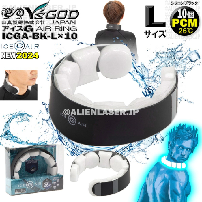 10着セット ICGA-BK-LX10 アイスG AIRリング シリコンブラック L サイズ アイスジー ワイズゴッド 山真 ヤマシン 26℃ PCM 素材 広い接地面積 構造配列 首に密着
