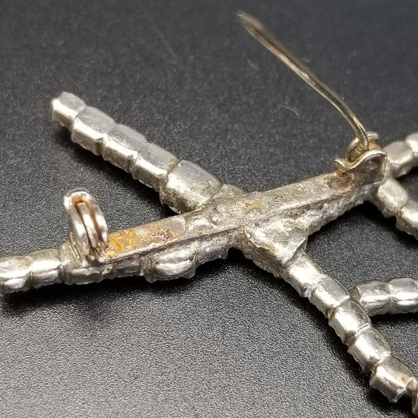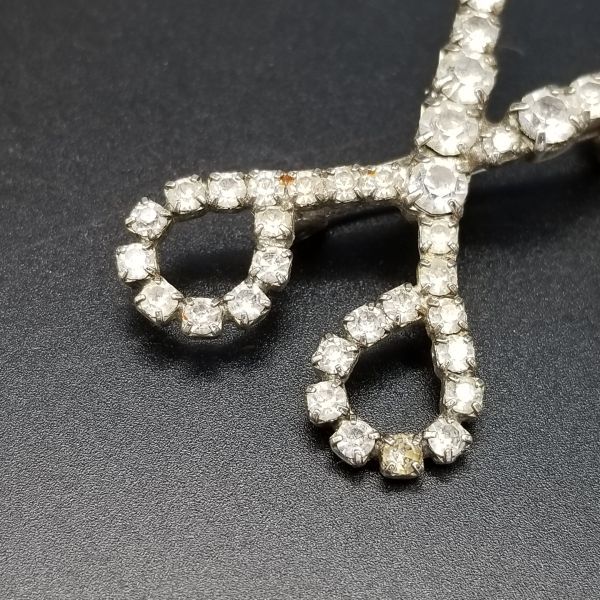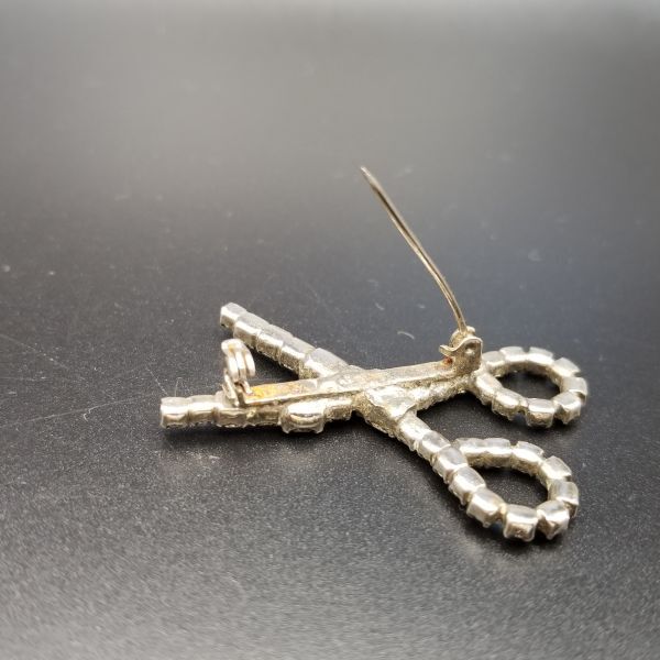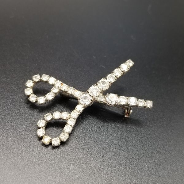 ハサミ クリアラインストーン装飾 ヴィンテージ ブローチ シルバートーン ユニーク 個性派ジュエリー 裁縫道具 AJC