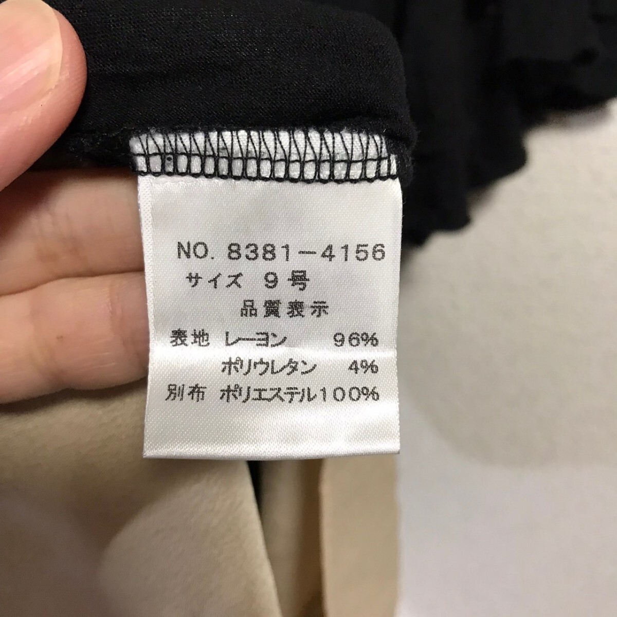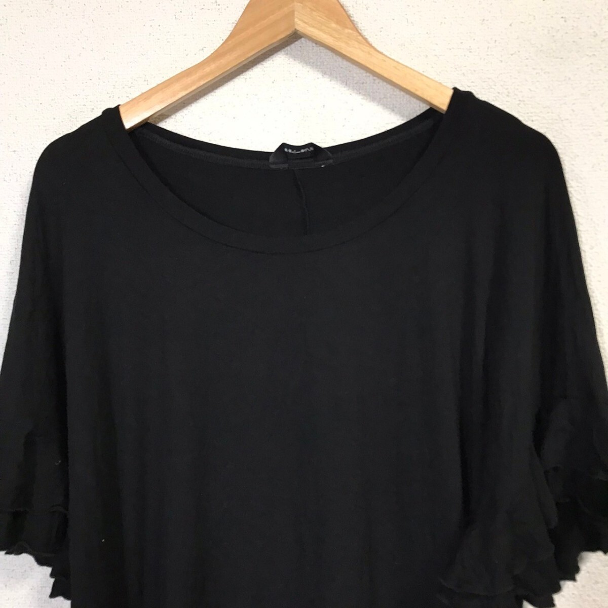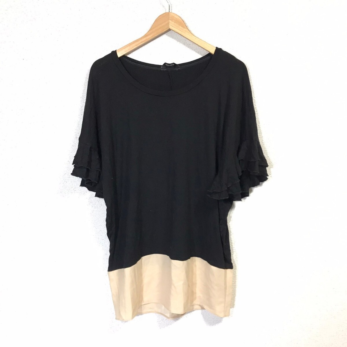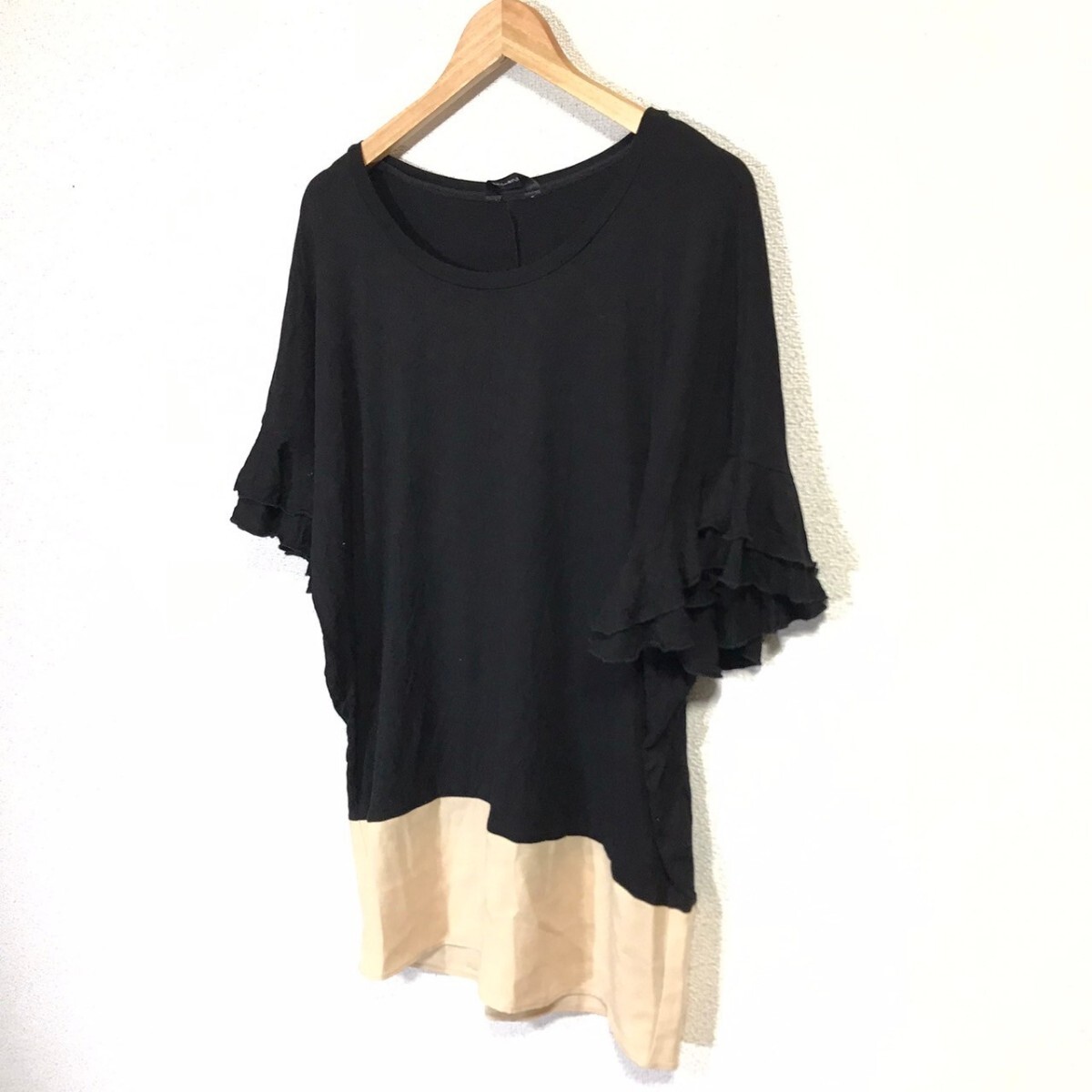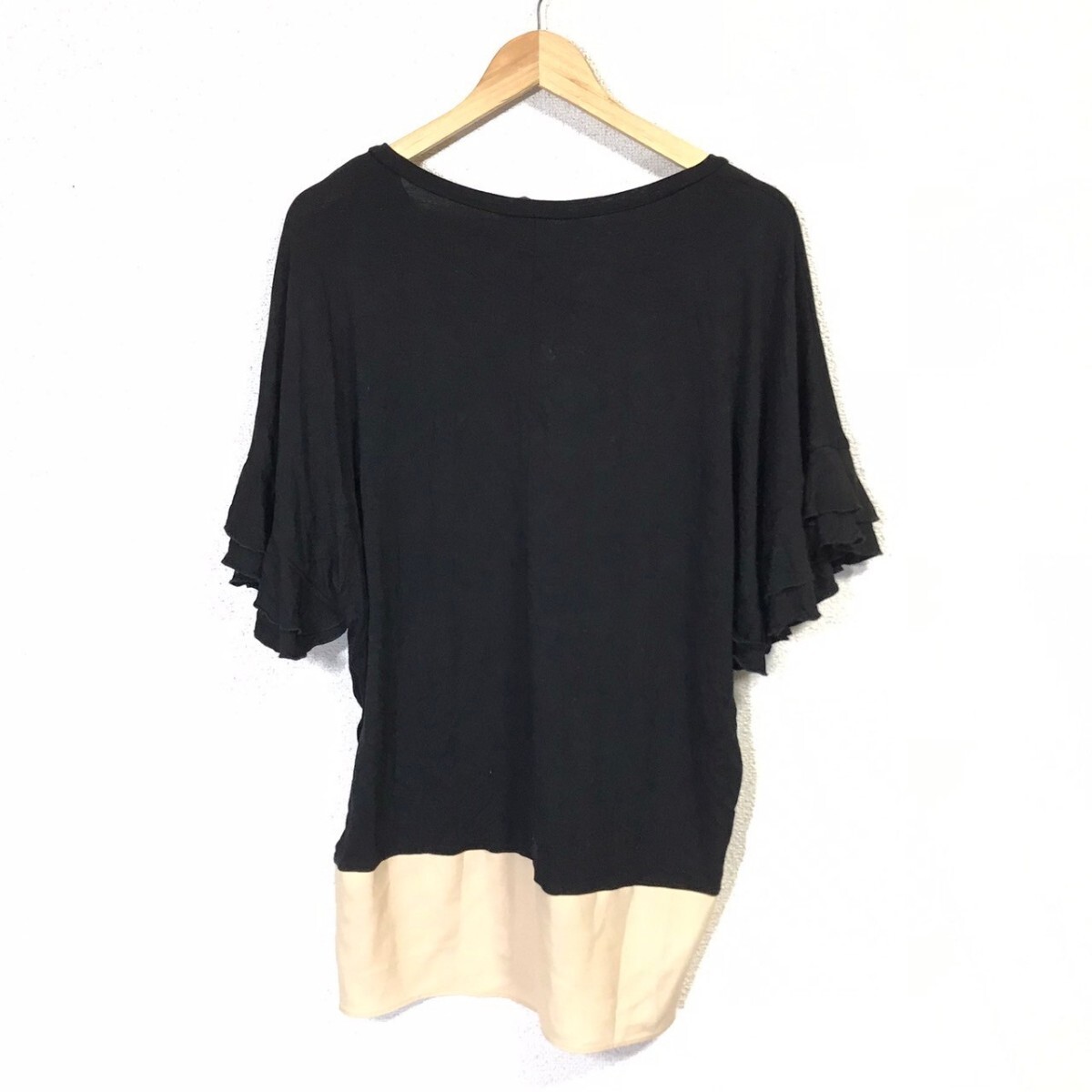 H8493dL 日本製 SCOTCLUB スコットクラブ サイズ9号 (M~L位) 半袖Tシャツ 袖フリルカットソー チュニック ブラック×ライトベージュ