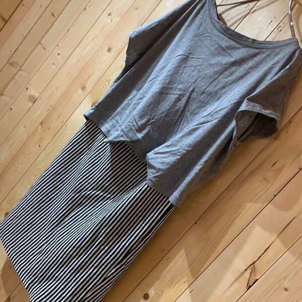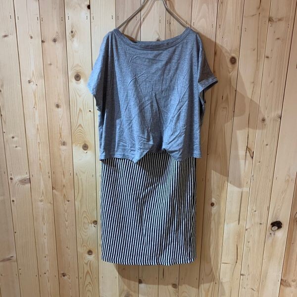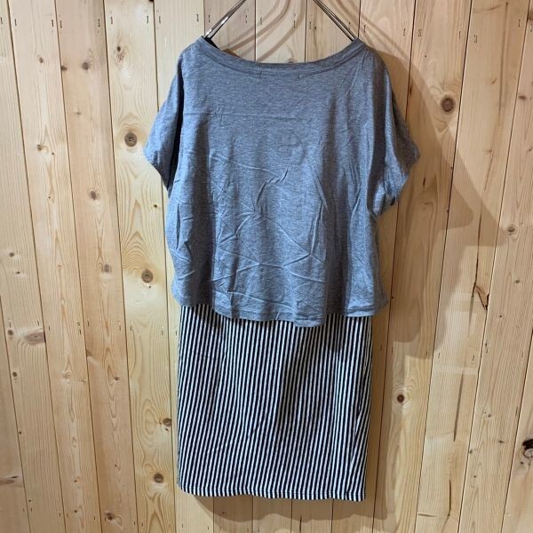 [KWT2435] ADAYINTHELIFE ノースリーブワンピース レディース グレー×ボーダー ポス