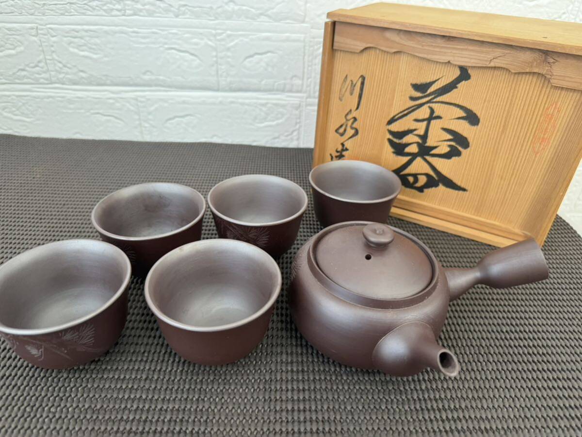 萬古焼 茶器茶器セット 急須 湯呑 煎茶道具 煎茶器 未使用 箱付 川水造 A-205