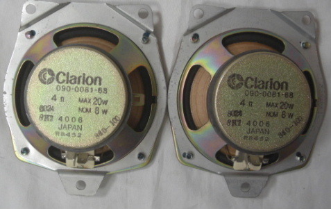 | CLARION:SKA157/12cmブラウンコーンスピーカー2本組090-0081-68未使用品R060516 昭和レトロ、12cmブラウン色コーン未使用品で御座いました。 是非お楽しみ頂けます。30数年の時を経て未使用で令和に 甦りました。 ・在庫限定処分品に付き、売り切り最低価格スタートの出品。 ★主な規格090-0081-68 CLARION,シングルコーンフルレンジユニット ●F特70Hz-12000Hz ●入力:: 連続8W/ 20W MAX ●負荷インピーダンス::4Ω ●ユニットサイズ::120x120xD53mm ●バッフル穴サイズ::100-103mm程 ●ビス止め穴ピッチ::117mm程 ●マグネット径::70mm ●取り付け座金付き、取り外し出来ます。 ★未使用品ですが、状態などはお写真でご覧下さい。 ・本体のみの出品です。 ★永年の在庫でしたので、多少の汚れ等御座います。 ・クリーニング致し、全テストしまして丁寧に梱包の上お届け申し上げます。 ★送料、ゆうパック元払い、60サイズでお届けに成ります。 ★現品限りの売り切り最低価格のスタートです。 ★是非この機会にお備え下さい、宜しくお願い致します。 | ||