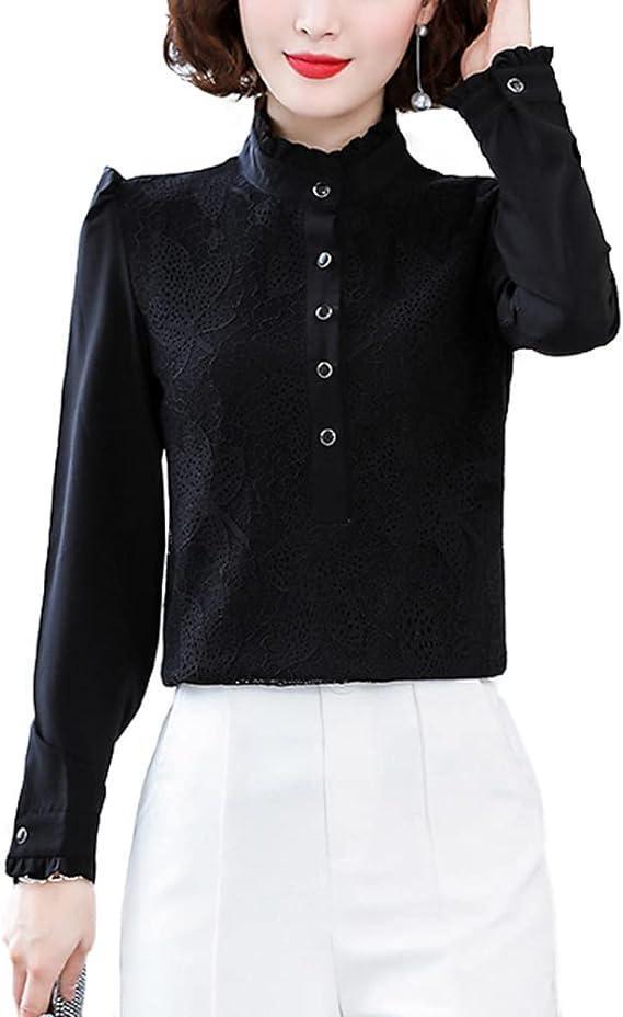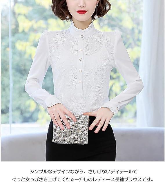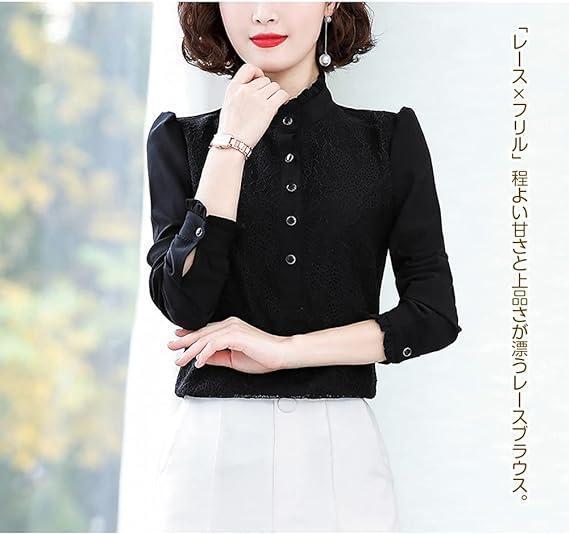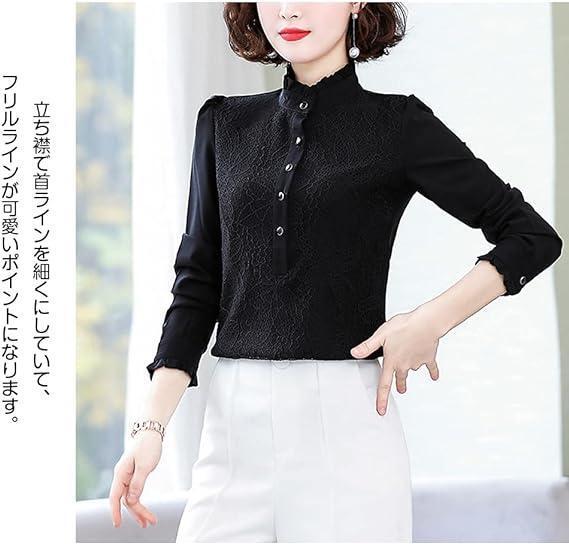 レース ブラウス ハイネック 春秋 フォーマル ブラウス 黒 白 長袖 ワイシャツ おしゃれ スーツインナー レディース スタンドカラー シャツ 立ち襟 フリル 通勤 オフィス ビジネス 事務服 OL
