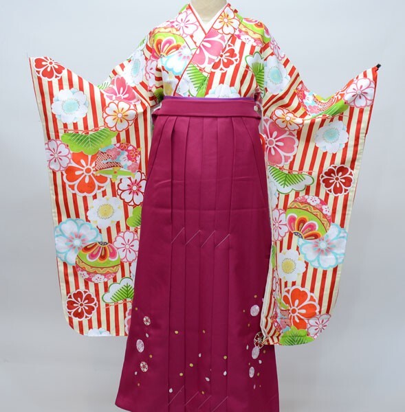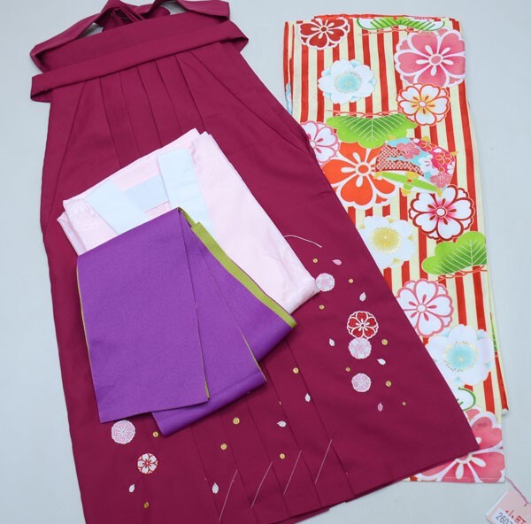 項目 | 卒業式:二尺袖着物袴フルセット ・二尺袖着物 ・重ね衿(着物に縫いつけられています) ・二尺袖長襦袢(白の半襟付き) ・袴 ・袴下帯(浴衣帯にも使用できます。) ■実物の刺繍袴及び袴下帯につきましては、モデルではなく、マネキン画像、下置き画像に掲載されている商品になります |