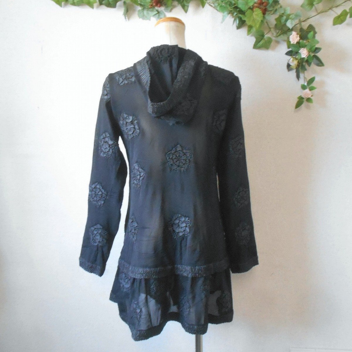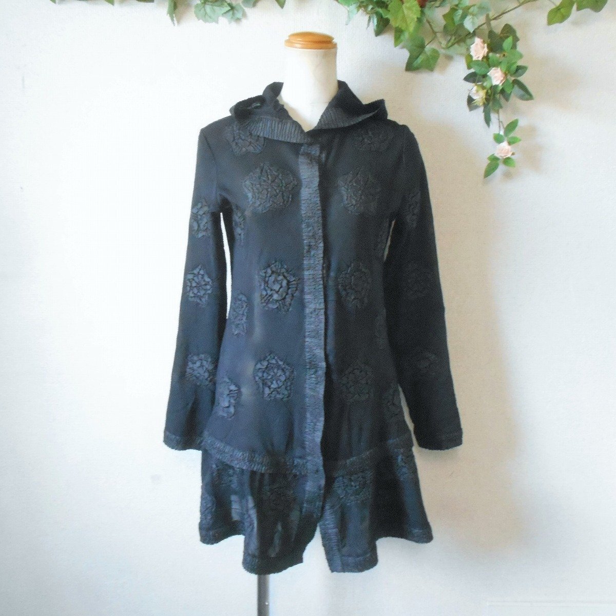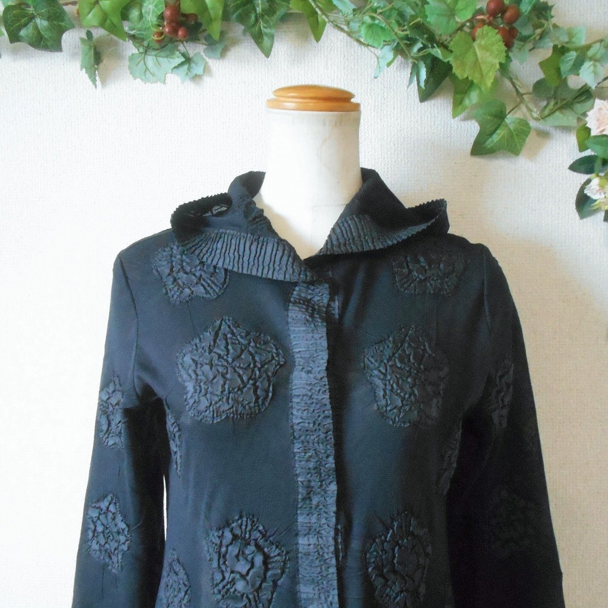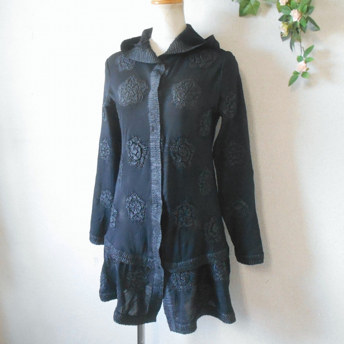 【ポイント】ノコオーノ、ハローハローのパーカー(ジャケット)になります。お色は黒色で透け感のある春夏を中心に着ていただけるお品です。前はスナップ式で、ノコオーノらしい、プリーツモチーフが使用されたとっても素敵なデザインです。