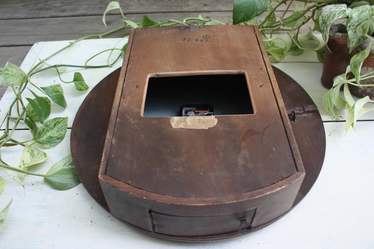 ・古い丸型のボンボン時計のゼンマイ部を電池式の新品のクオーツに改造した時計となります。
