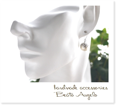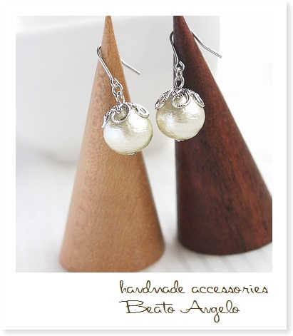 ◇◆+angelo+コットンパールの一粒ピアス(p-377)ミント S 10mm 花座 シンプル ライトグリーン チタン 樹脂 イヤリング
