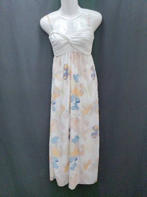 ◇ MURUA ムルーア 総柄 裏地あり リゾート ロング ストラップ ワンピース サイズF ホワイト レディース P