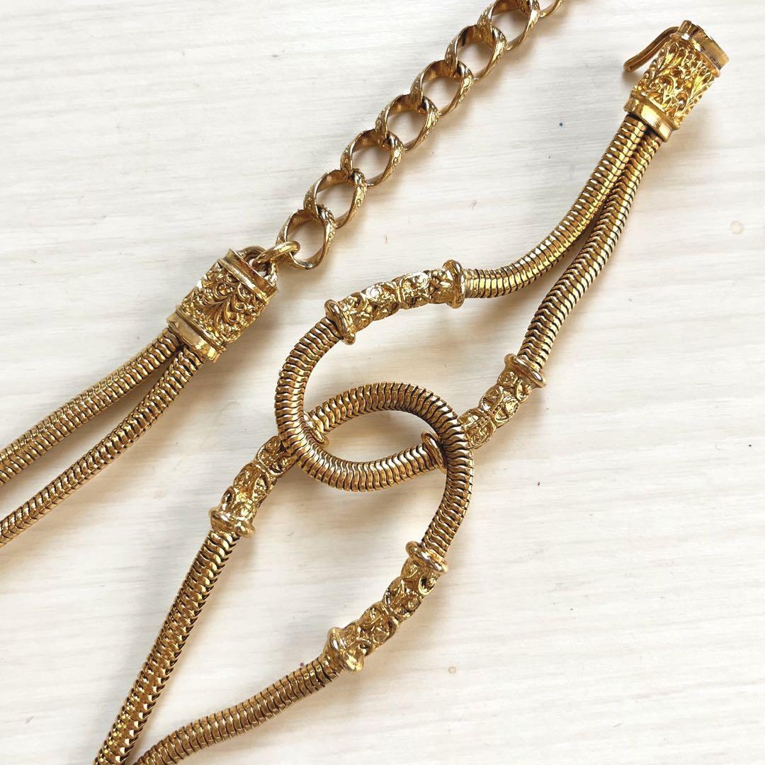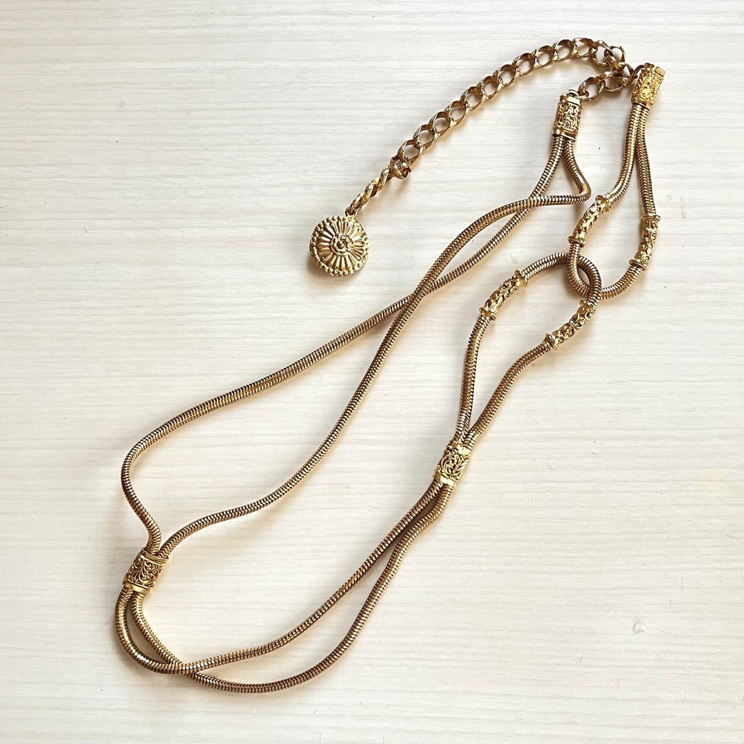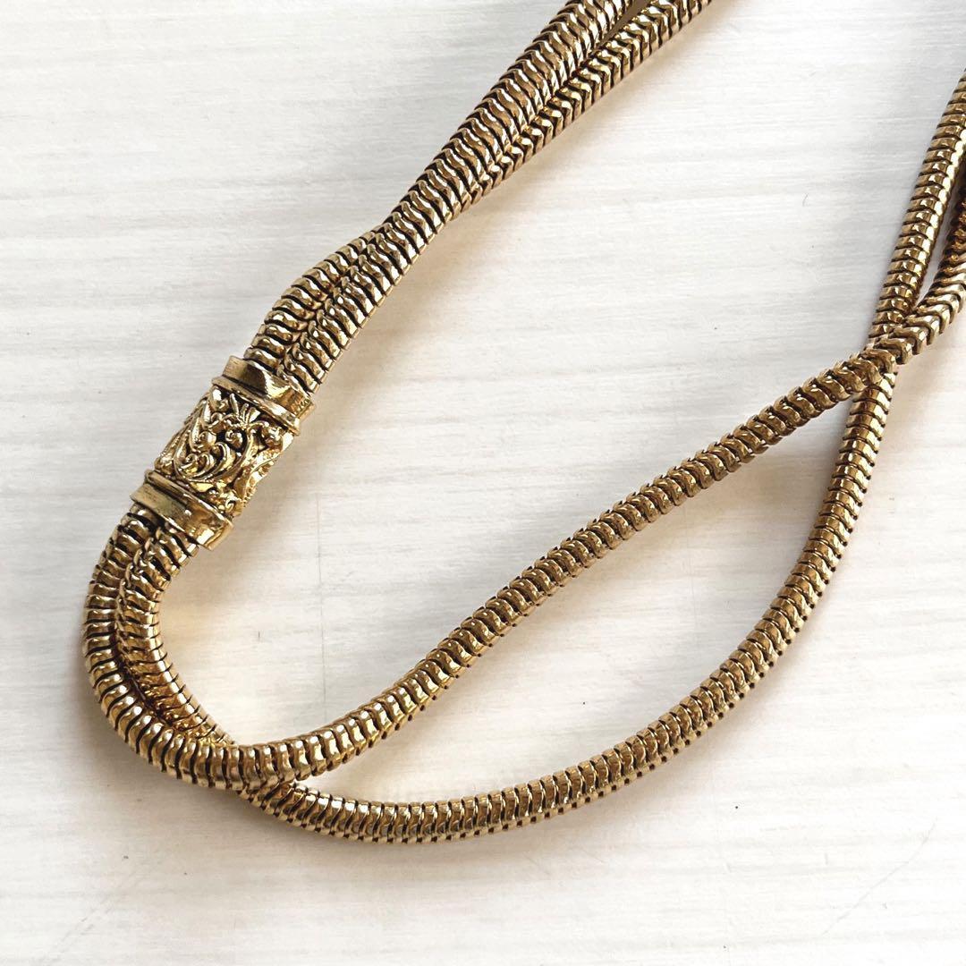 ■ゴールドのロングネックレス★金色★金属★豪華★レトロ ヴィンテージ アクセサリー■