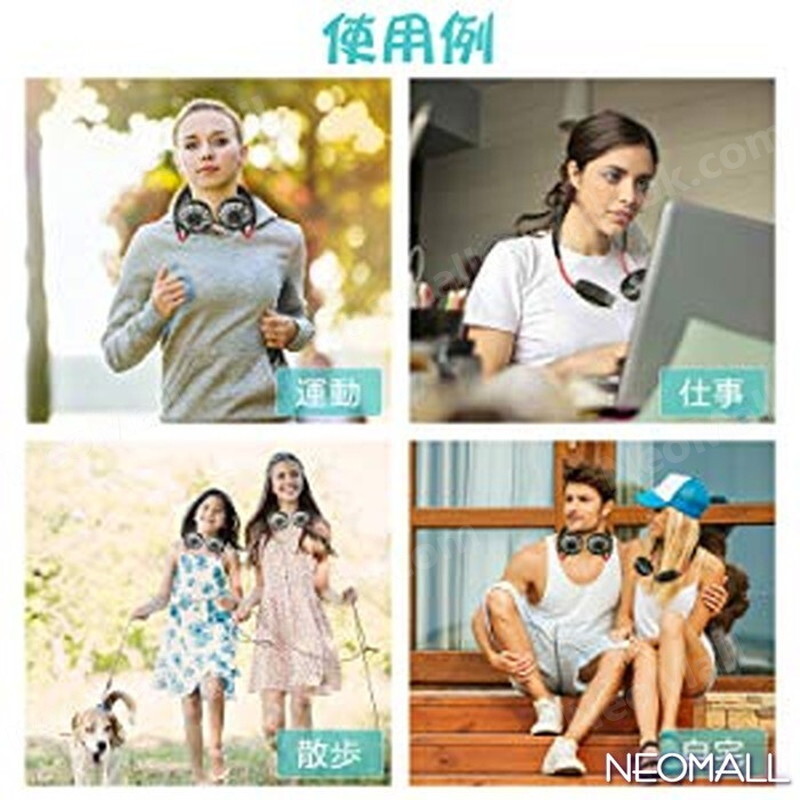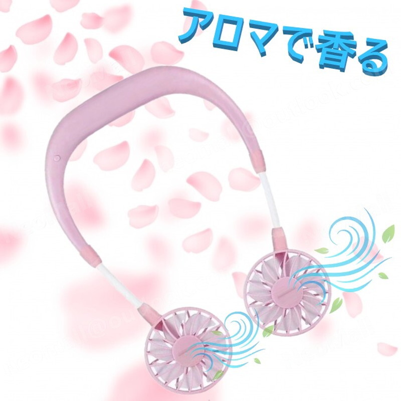 USB充電式 手ぶら扇風機 ピンク 2000mAh電池 12時間連続使用 ☆ 首かけ扇風機 携帯扇風機 3段風量調節 首掛け 手ぶら 夏アイテム