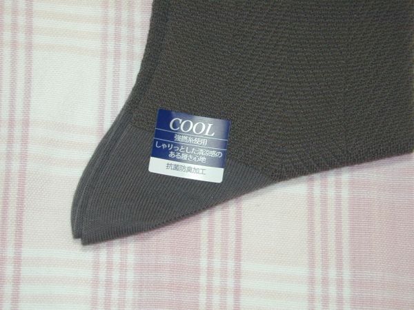 綿、ナイロン、レーヨン 強撚糸使用 抗菌防臭加工あり シャリ感のある薄い生地で涼感あります。かかとからの長さ約28㎝